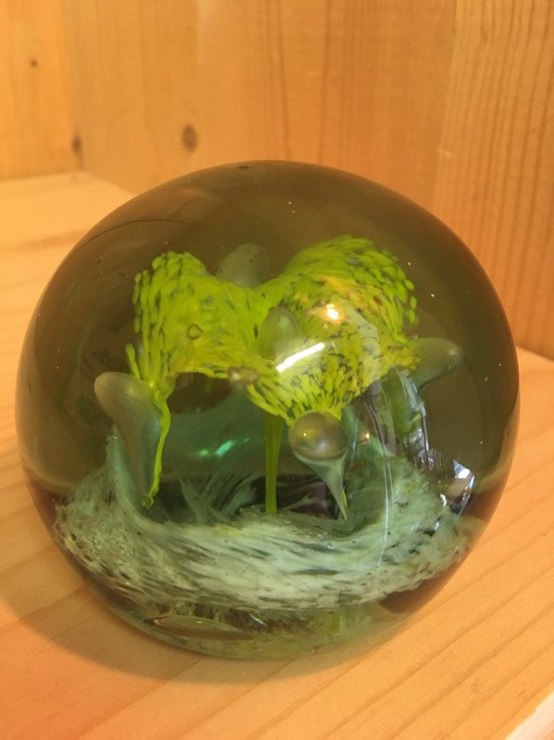 Victorian Glass Dump, End of Day Glass Paperweight with Unusual Yellow Flower c.1880