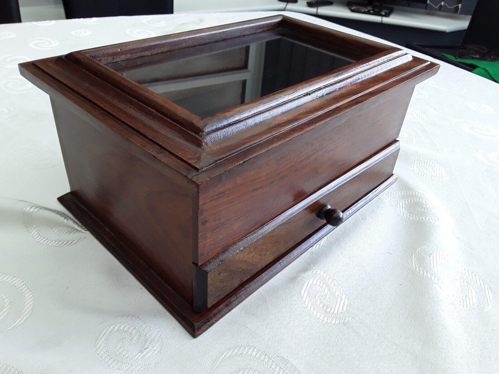 Victorian Glazed Original Mahogany Jewellery / Storage Box with Drawer