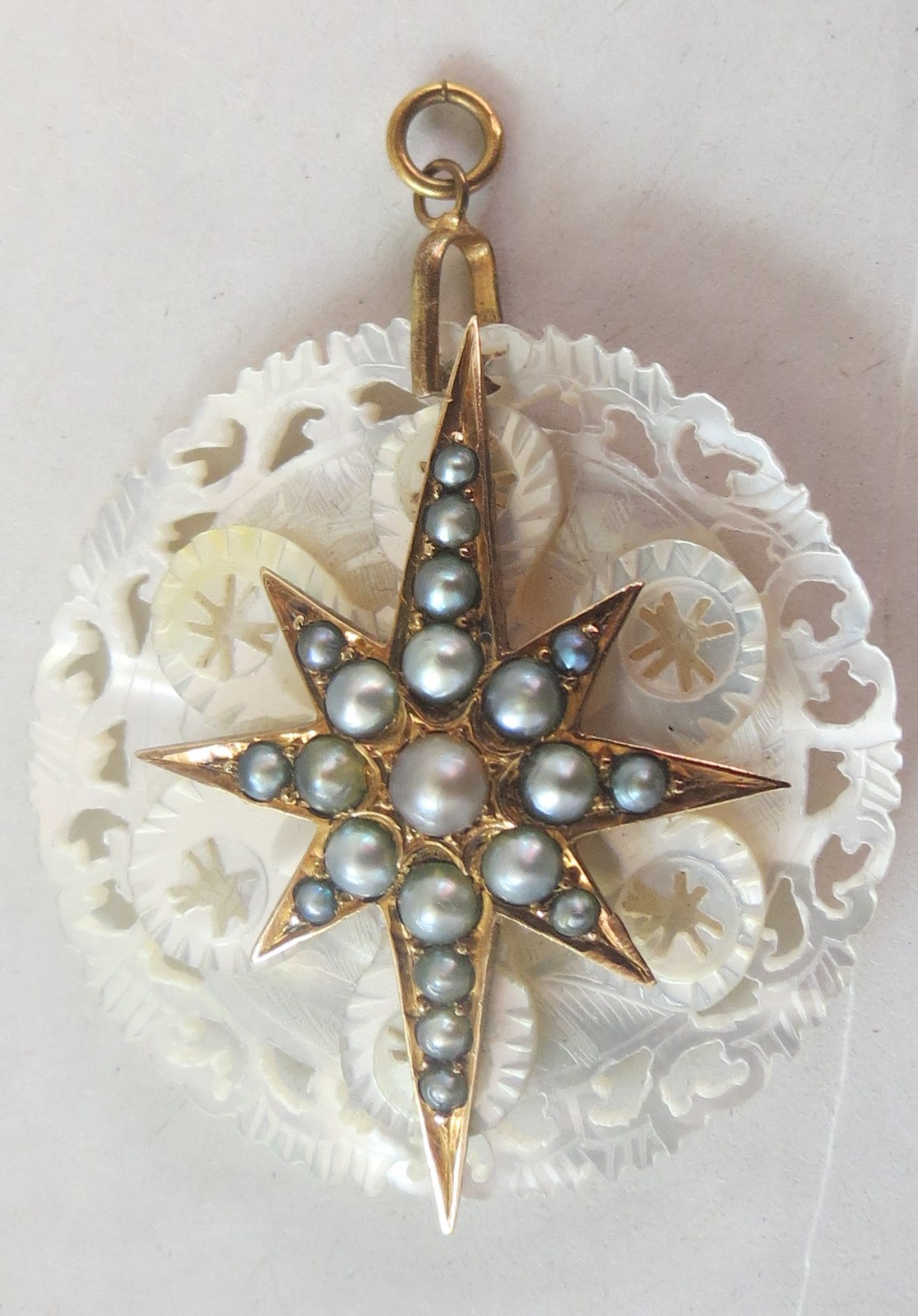 Victorian, Gold, Pearl & Mother of Pearl Pendant with Chinese Decoration - ca 1890 (1 of 9)