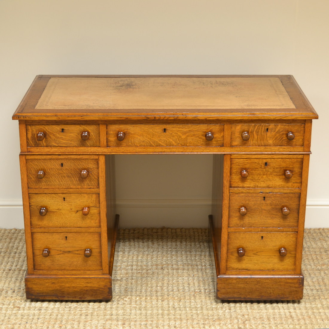 Victorian Golden Oak Antique Pedestal Desk by Druce & Co
