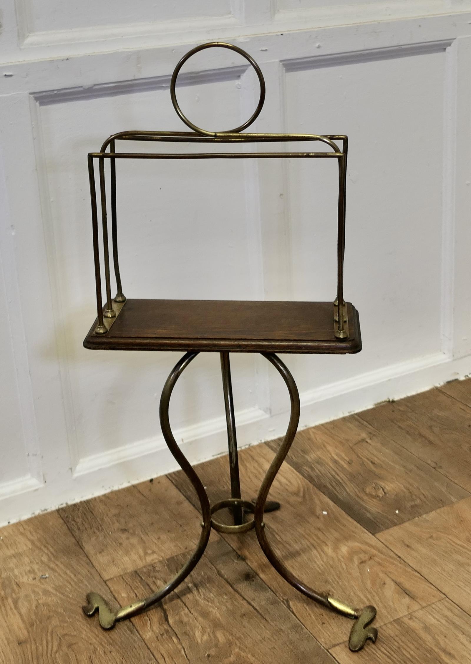 Victorian Golden Oak & Brass Revolving Magazine Rack