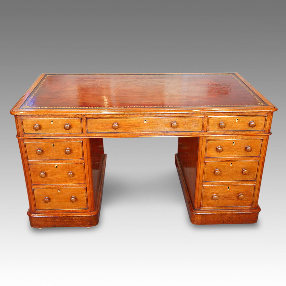 Victorian Golden Oak Pedestal Desk (1 of 1)