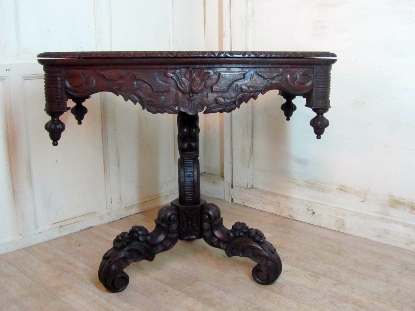 Victorian Gothic Carved Oak Folding Games, Card or Tea Table