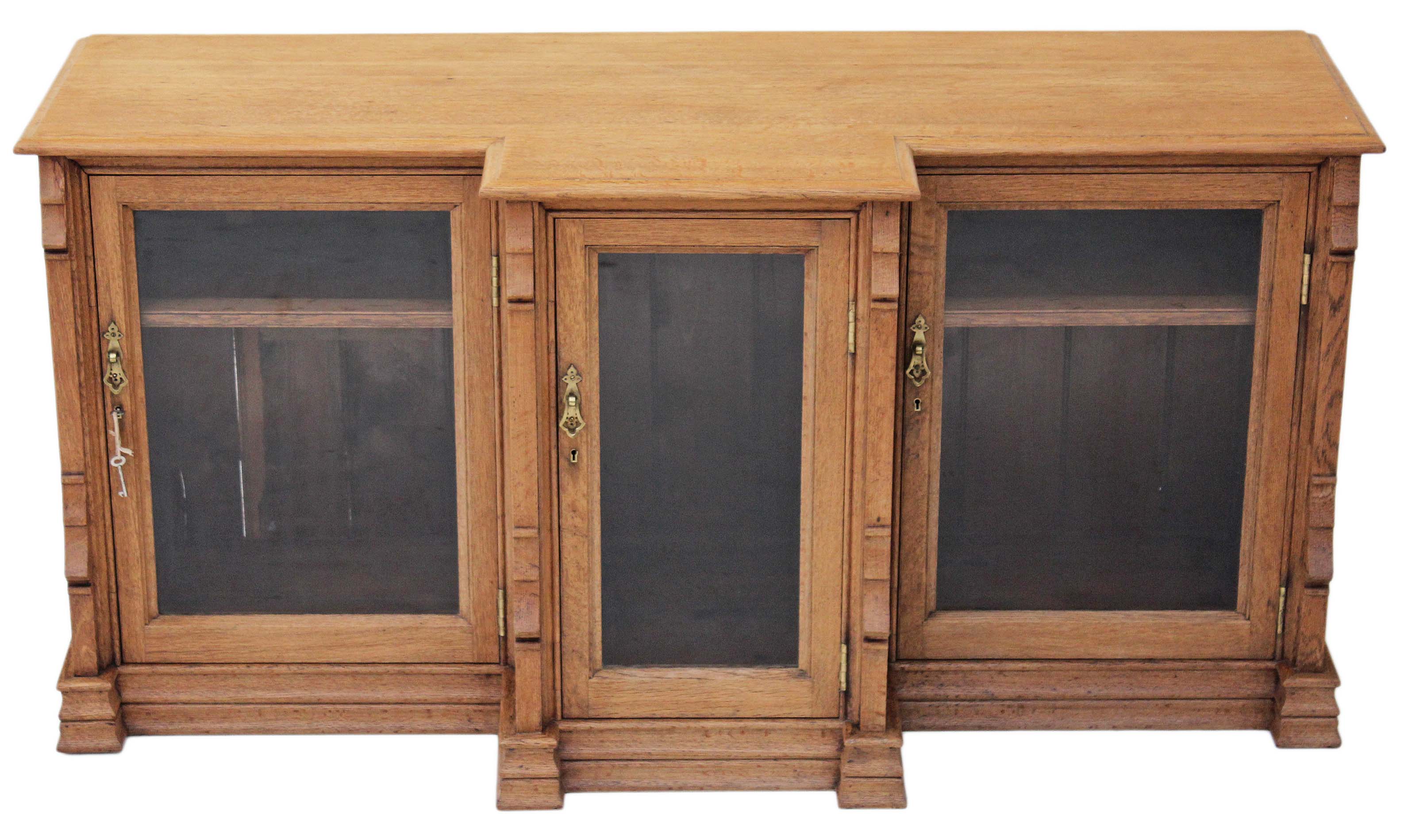 Victorian Gothic Light Oak Glazed Display Cabinet / Bookcase