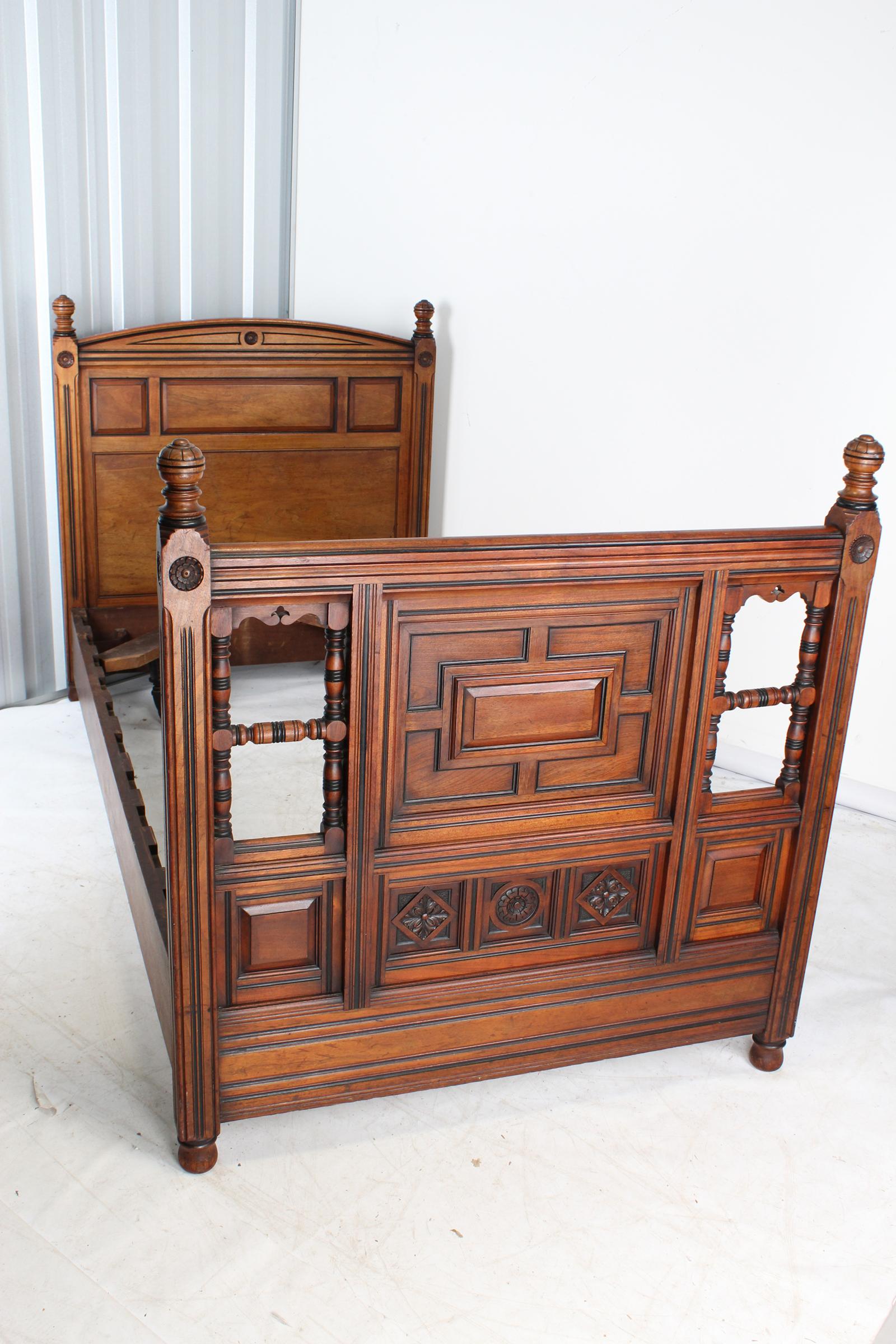 Victorian Gothic Revival Walnut Single Bed Manner of Gillows