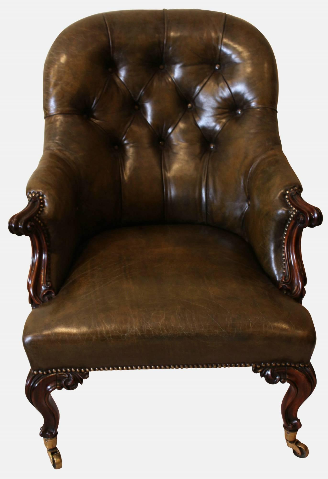 Victorian Green Leather Library Chair