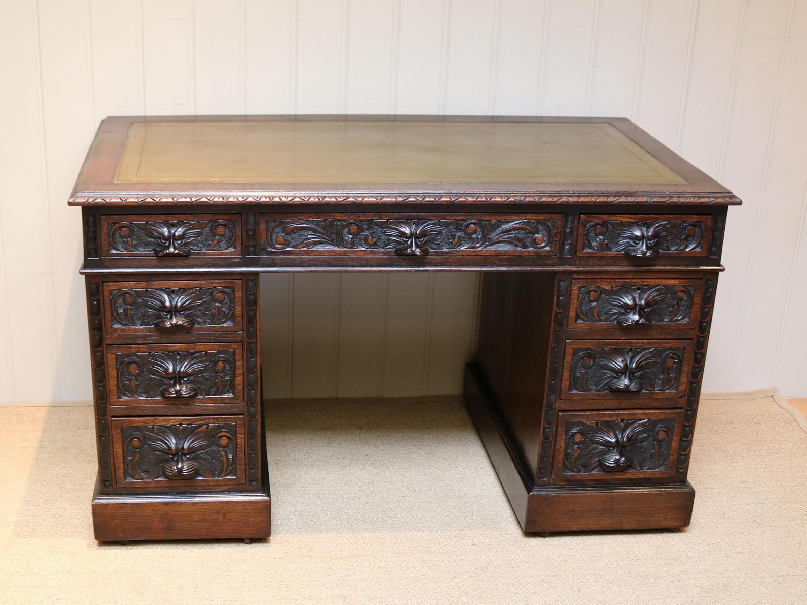 Victorian Green Man Carved Pedestal Desk (1 of 8)