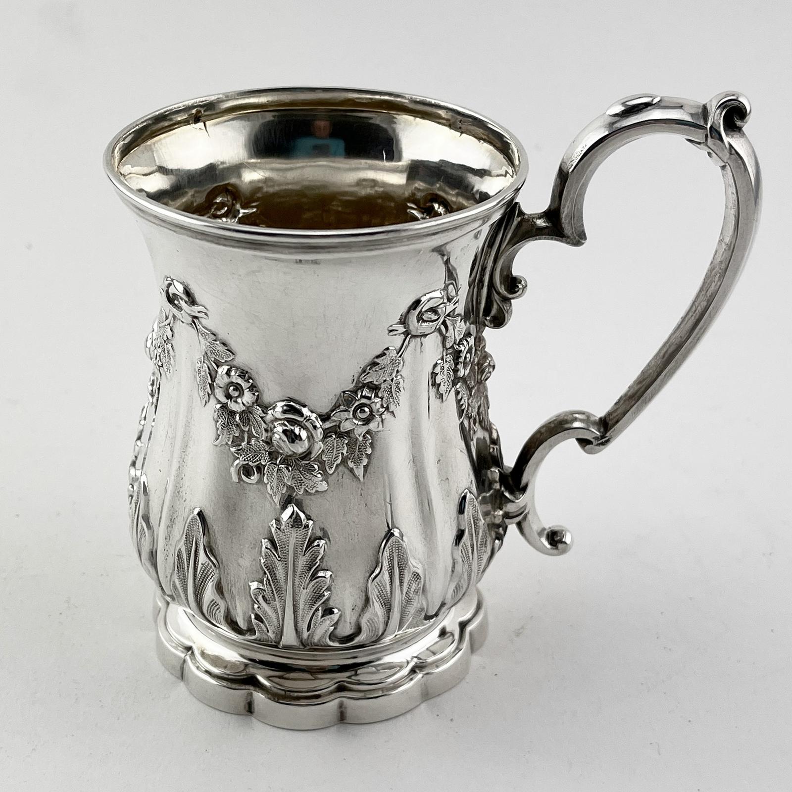 Victorian Half Pint Embossed Sterling Silver Christening Mug