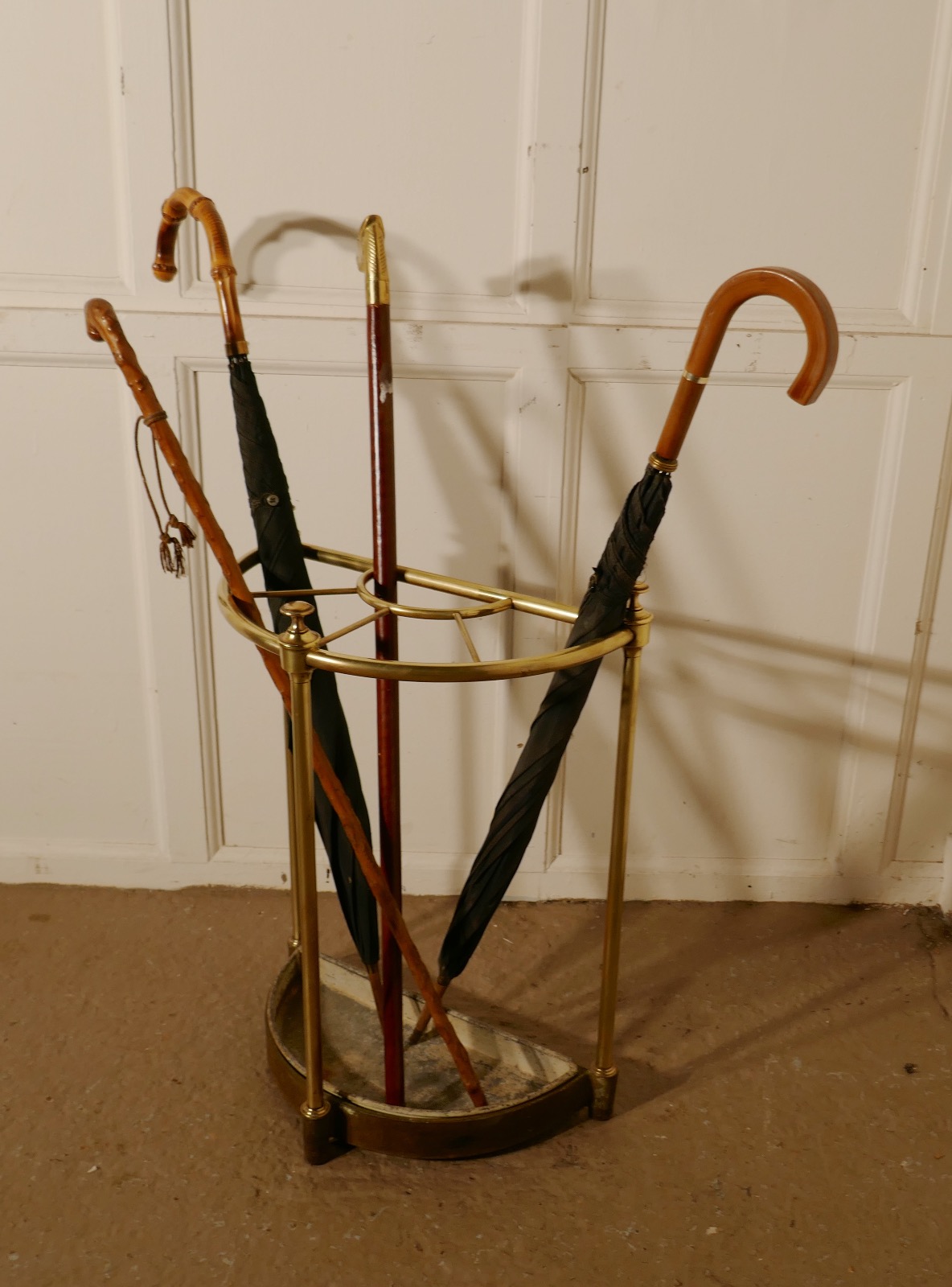 Victorian Half Round Brass & Iron Stick Stand or Umbrella Stand