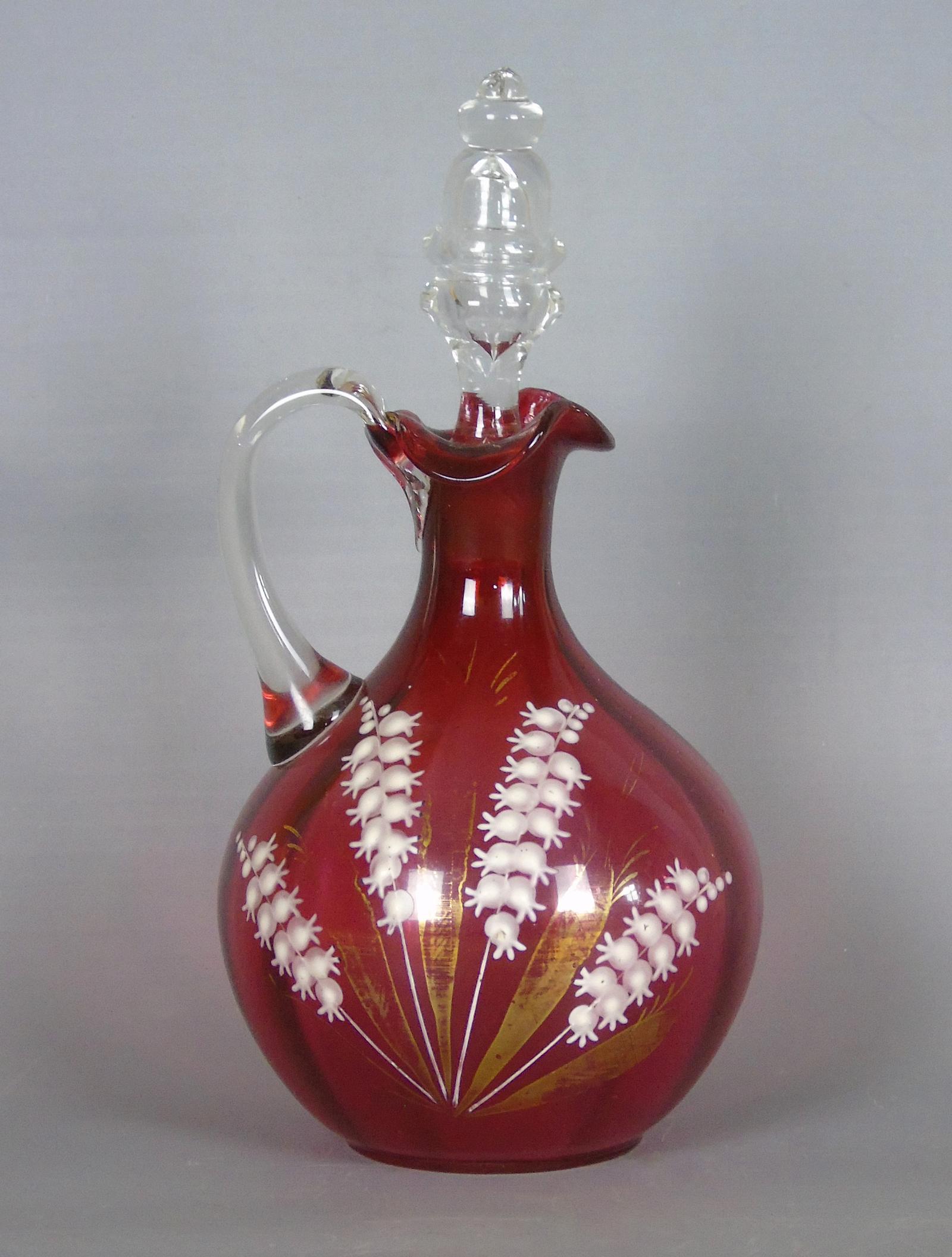 Victorian Hand Blown Cranberry Glass Decanter (1 of 5)