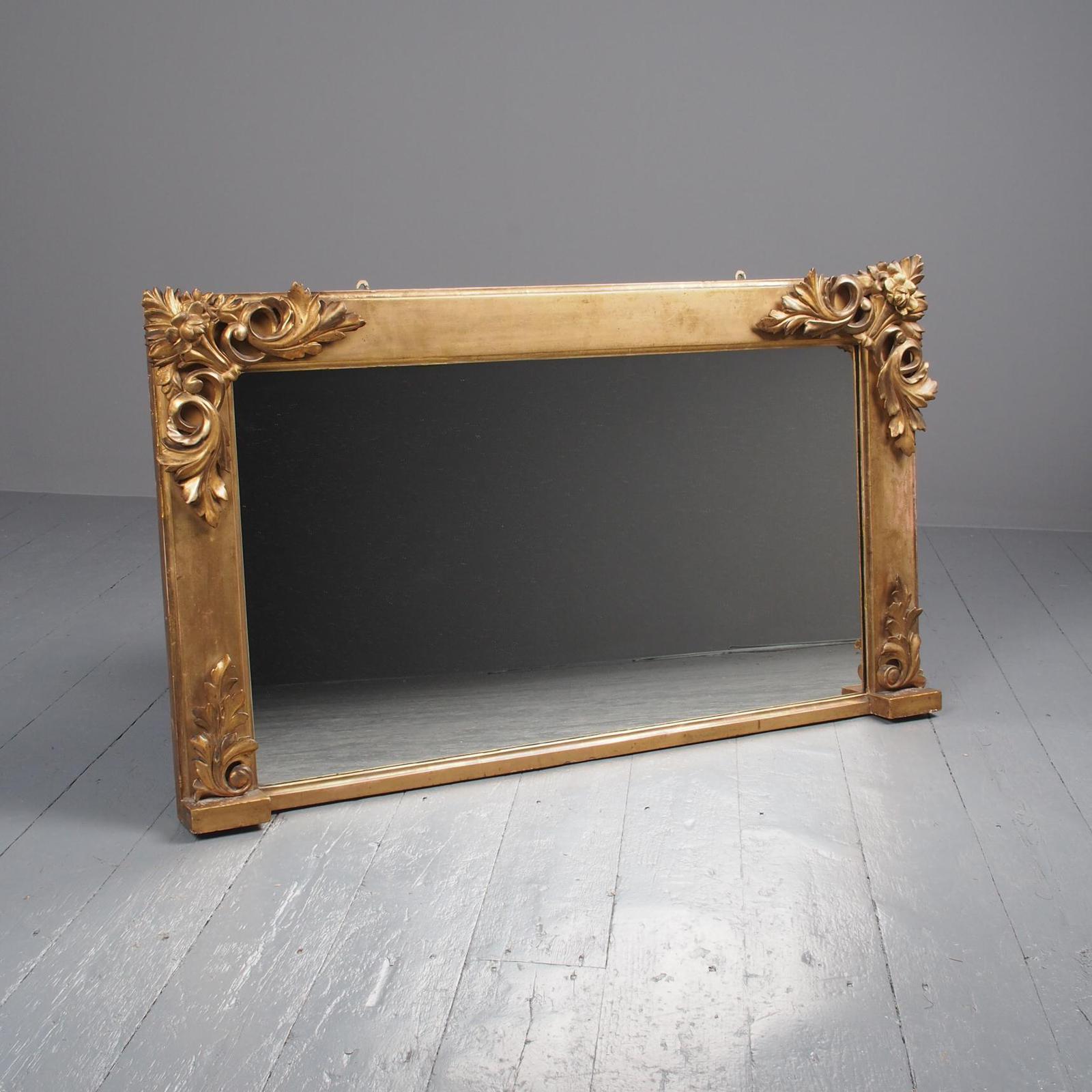Victorian Hand-Carved Giltwood Overmantel Mirror