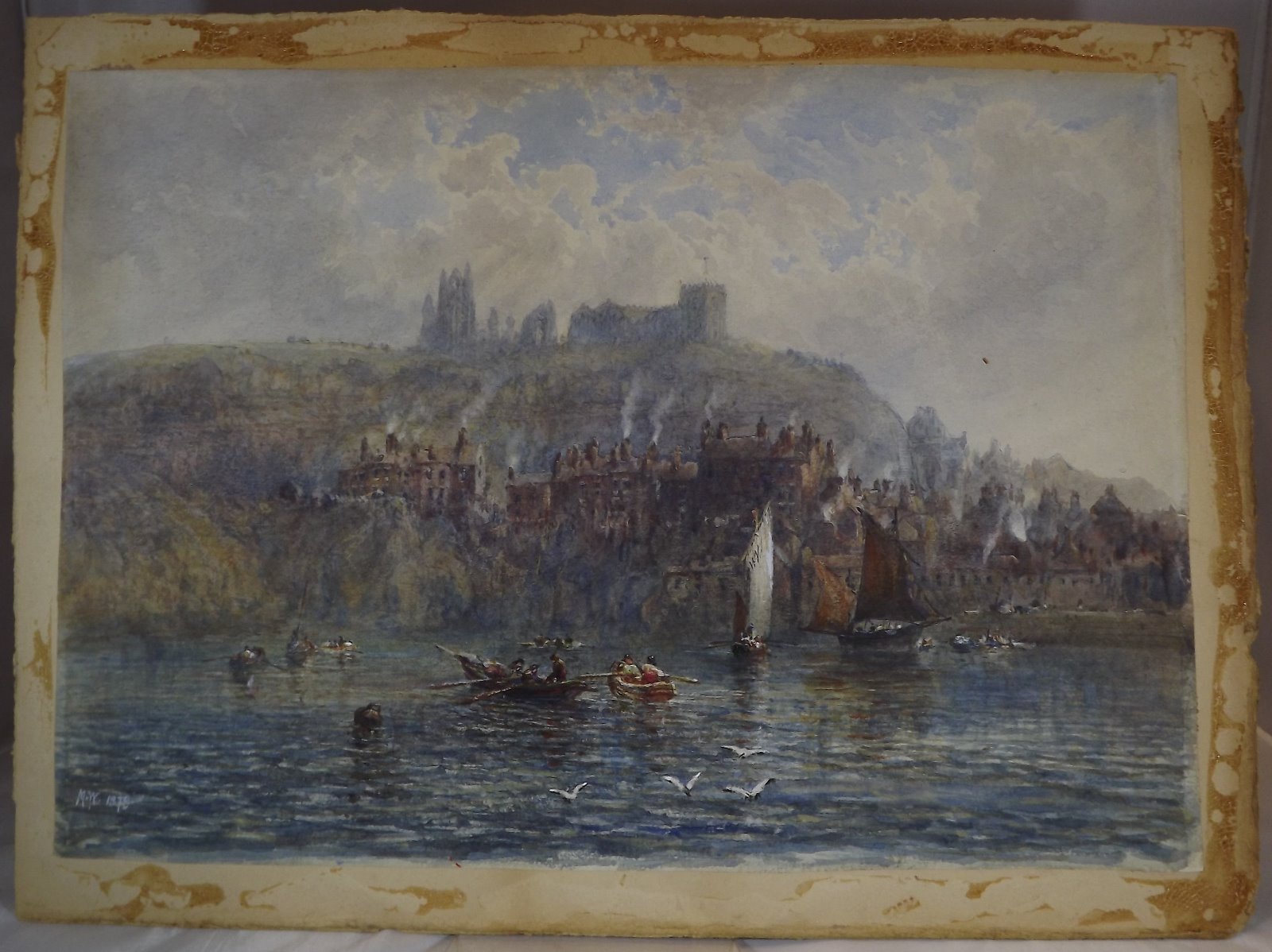 Victorian Harbour Watercolour Painting, Signed M.W. 1879