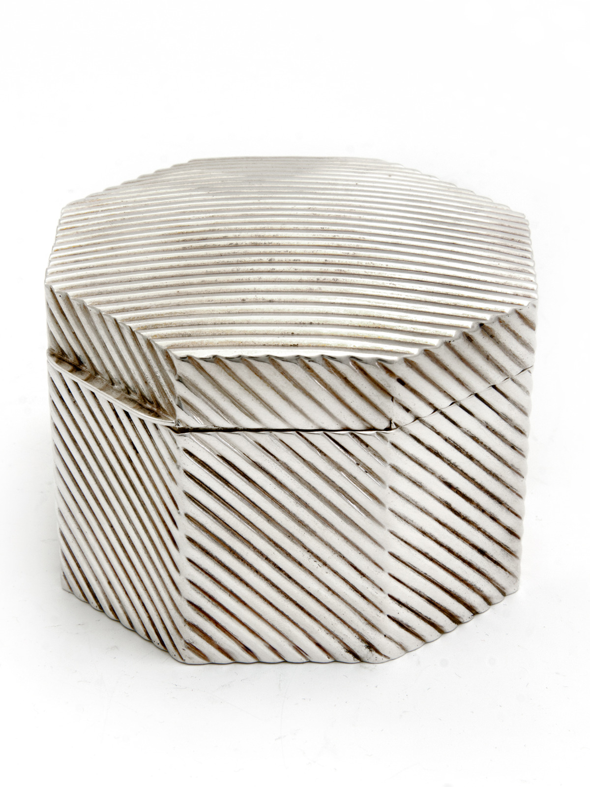 Victorian Hexagonal Silver Plated Lidded Box with Diagonal Ribbed Design