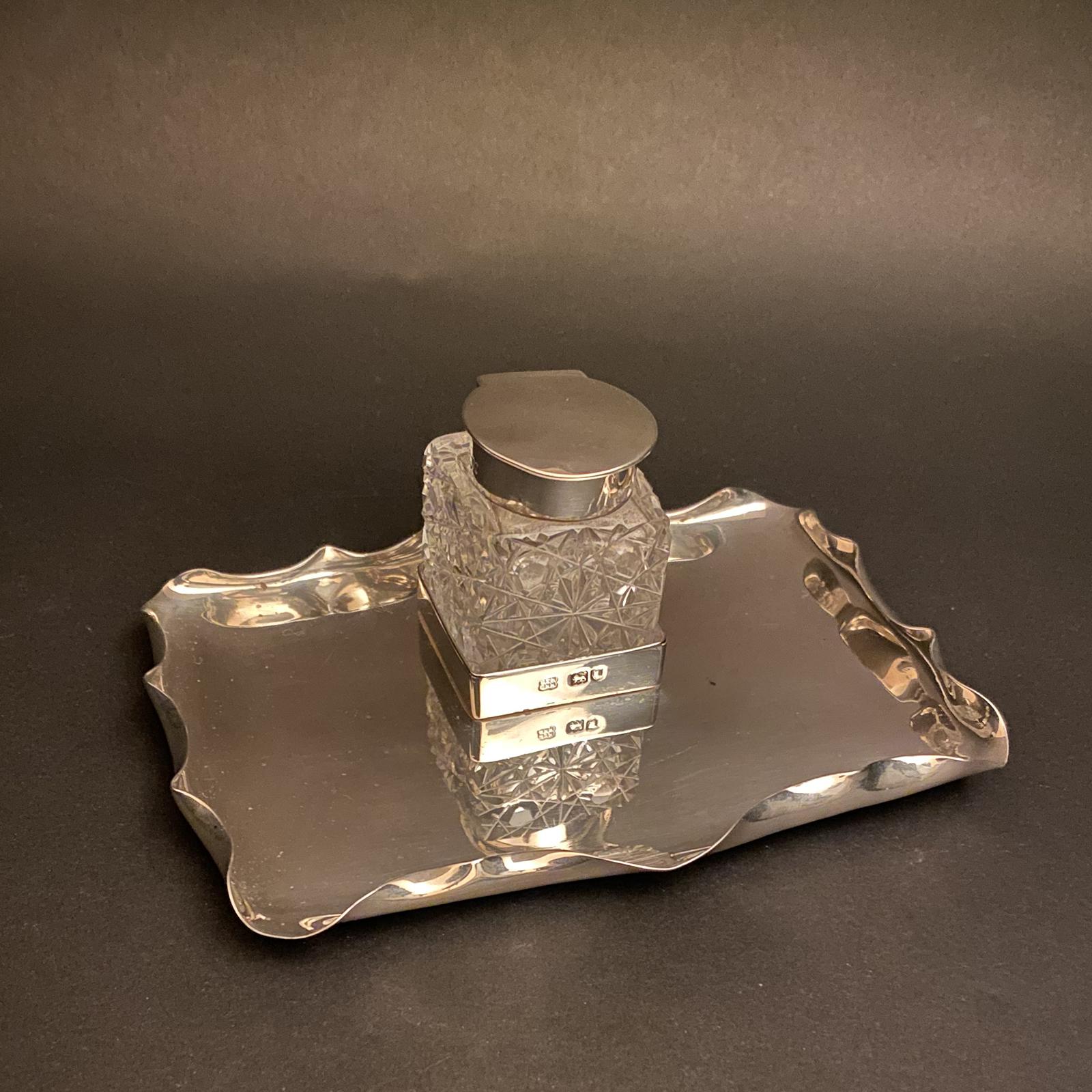 Victorian Hukin & Heath Silver & Crystal Inkwell & Fluted Tray