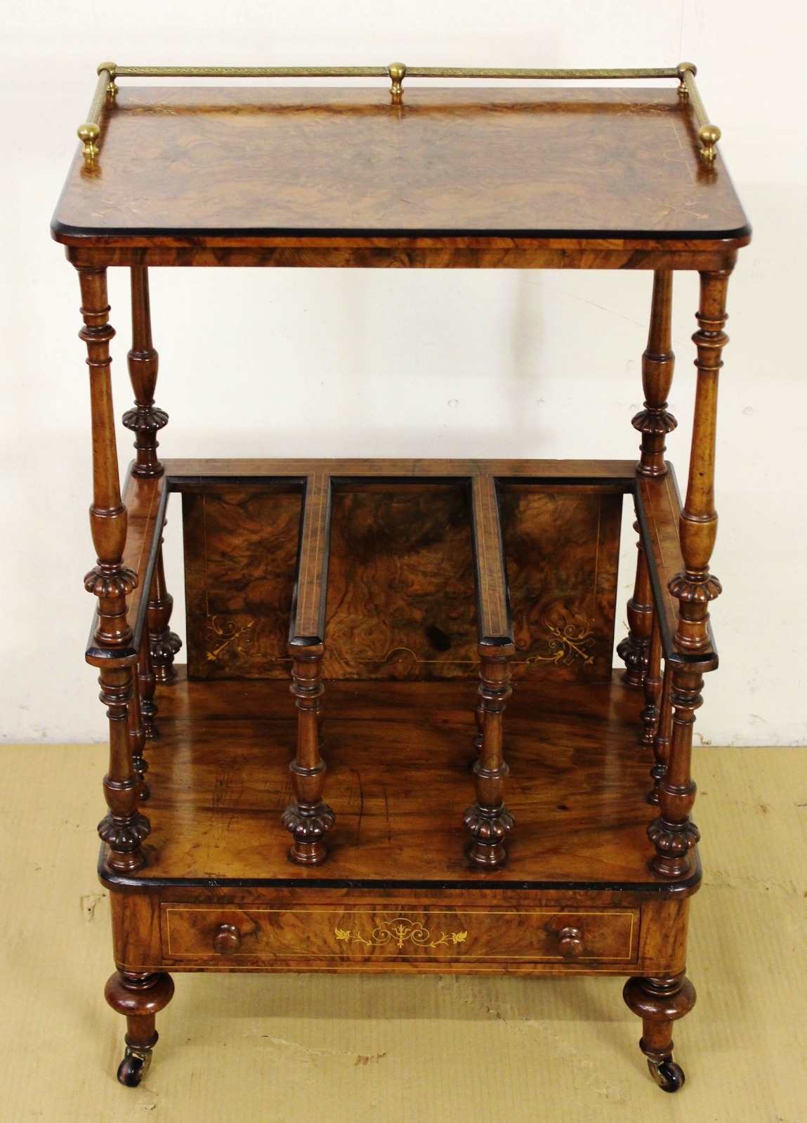 Victorian Inlaid Burr Walnut Canterbury Whatnot