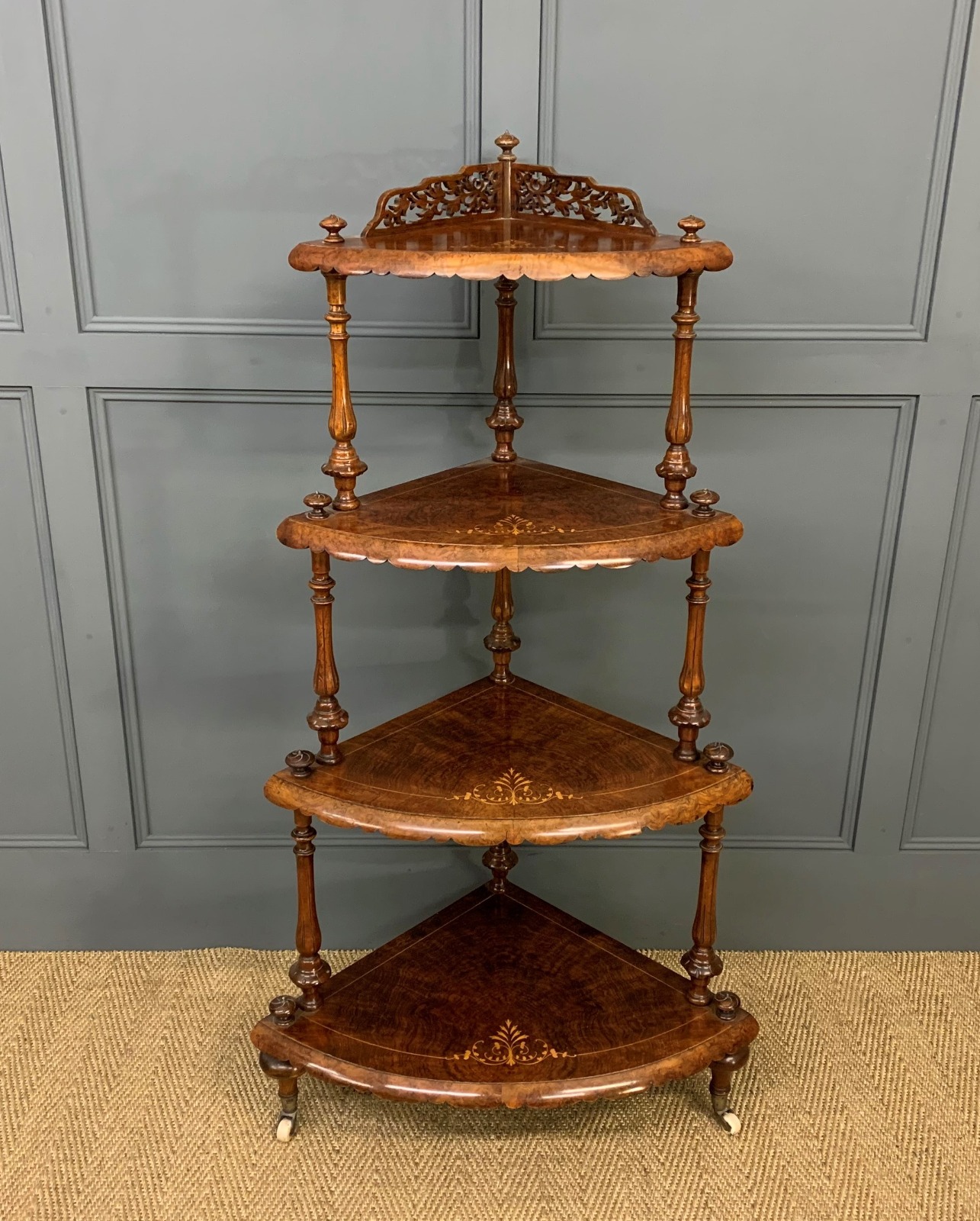 Victorian Inlaid Burr Walnut Corner Whatnot