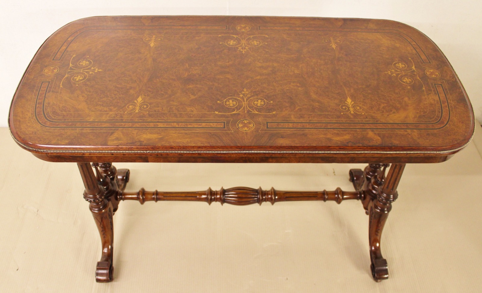 Victorian Inlaid Burr Walnut Stretcher Table (1 of 1)