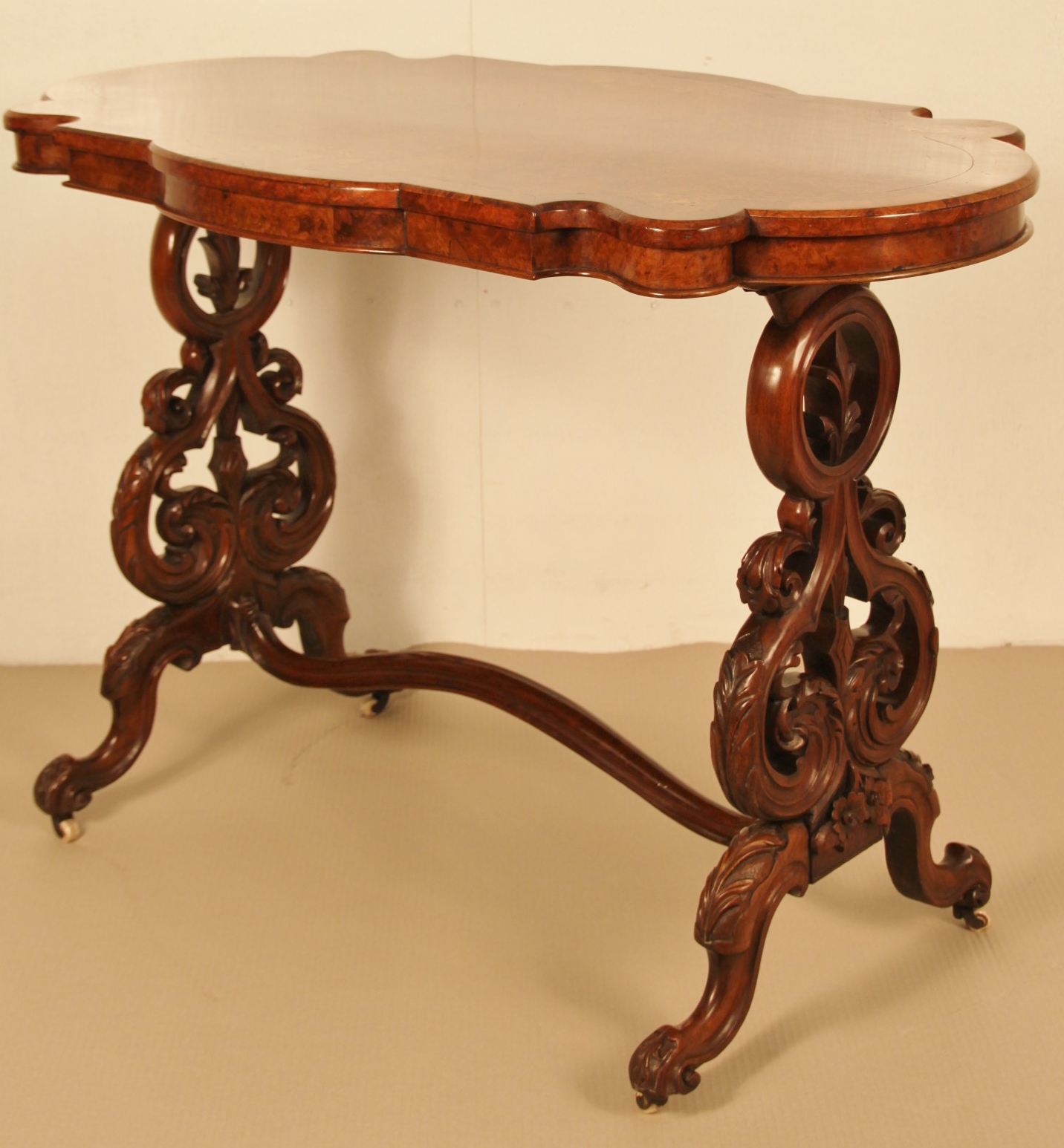 Victorian Inlaid Burr Walnut Stretcher Table c.1870