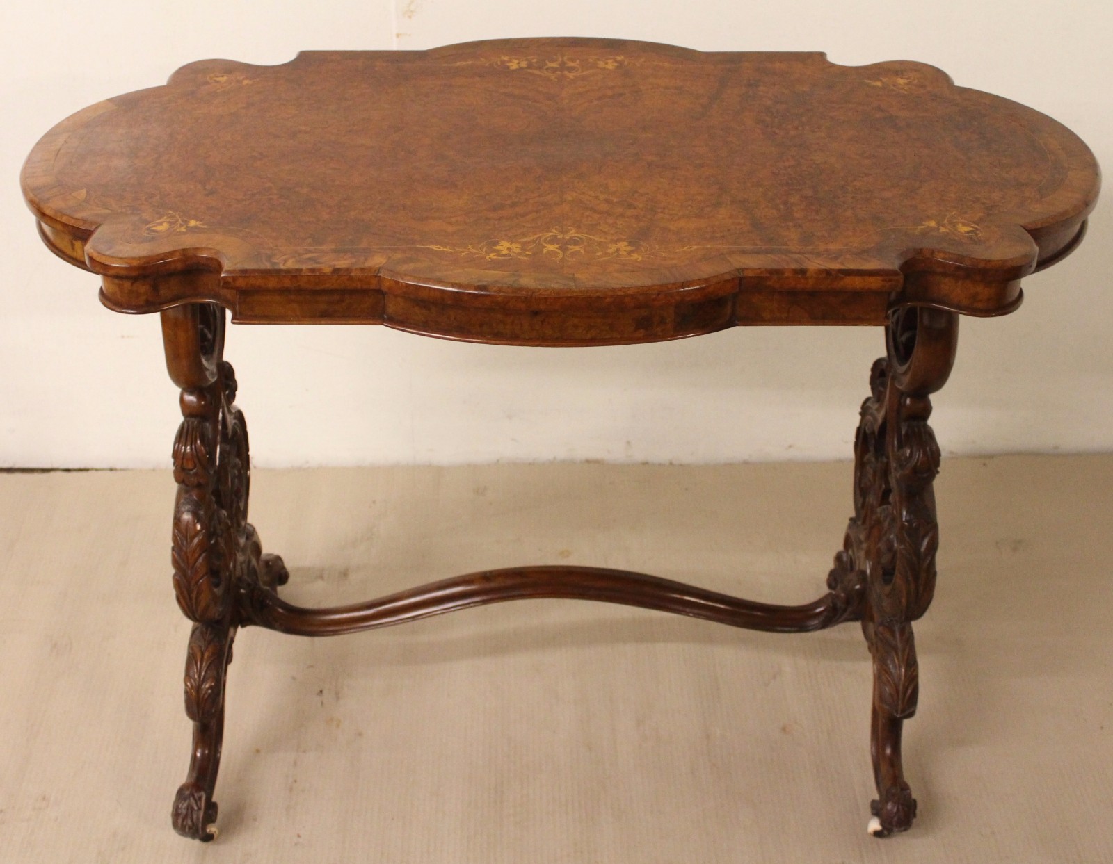 Victorian Inlaid Burr Walnut Stretcher Table c.1875 (1 of 1)
