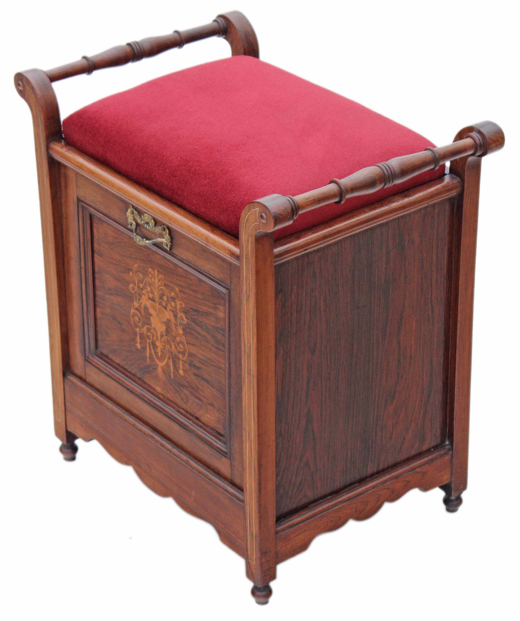 Victorian Inlaid Marquetry Rosewood Piano Stool / Dressing Table Seat