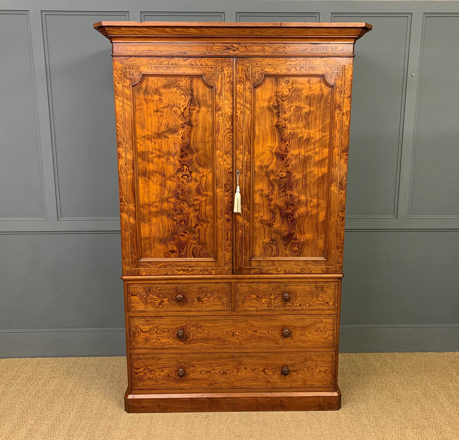 Victorian Inlaid Pine Linen Press by Bell and Coupland