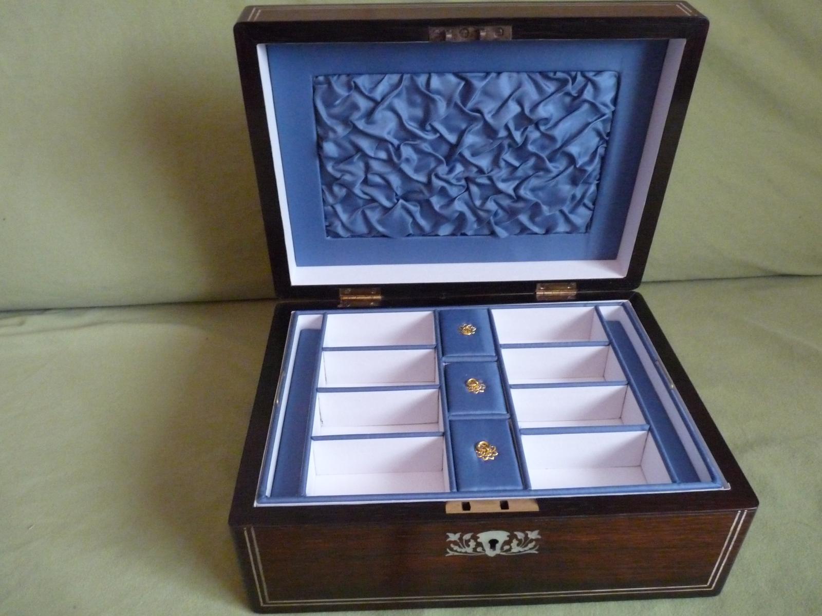 Victorian Inlaid Rosewood Jewellery Box + Tray c.1845