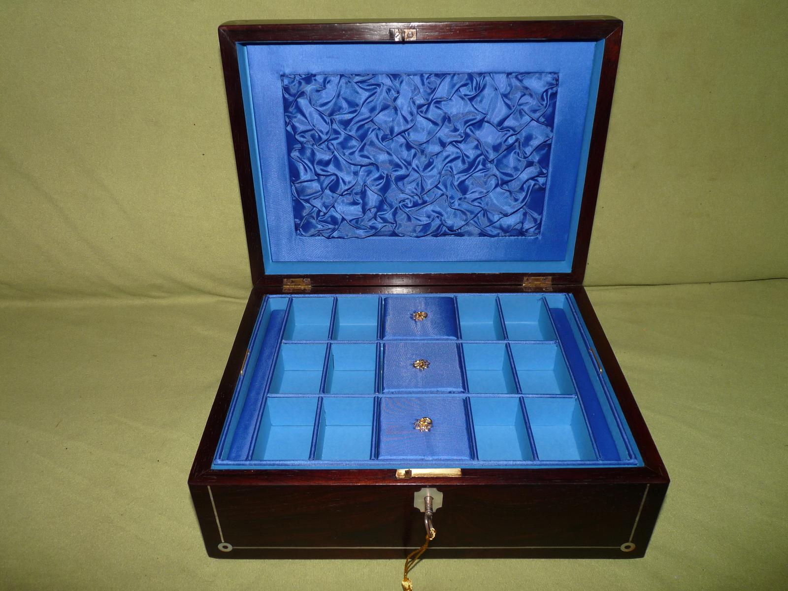 Victorian Inlaid Rosewood Jewellery Box + Tray. C1850