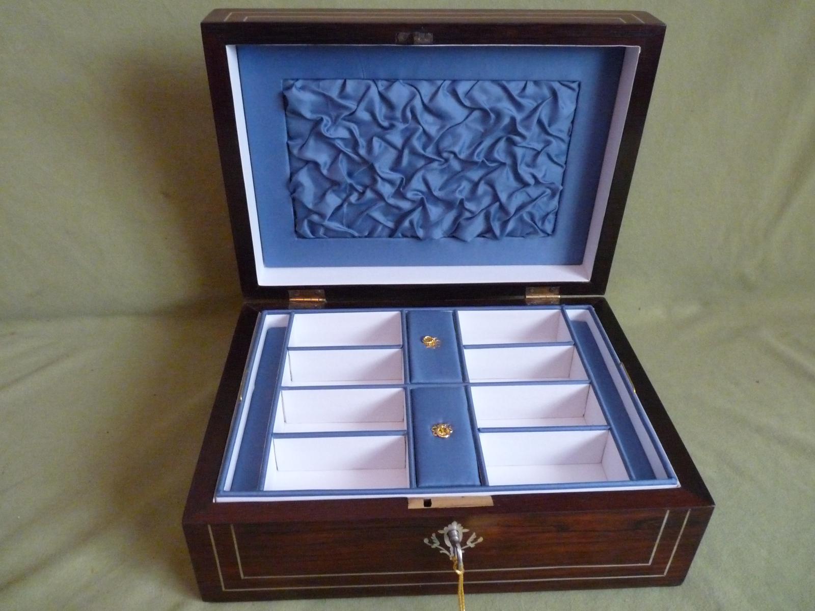 Victorian Inlaid Rosewood Jewellery Box + Tray c.1860