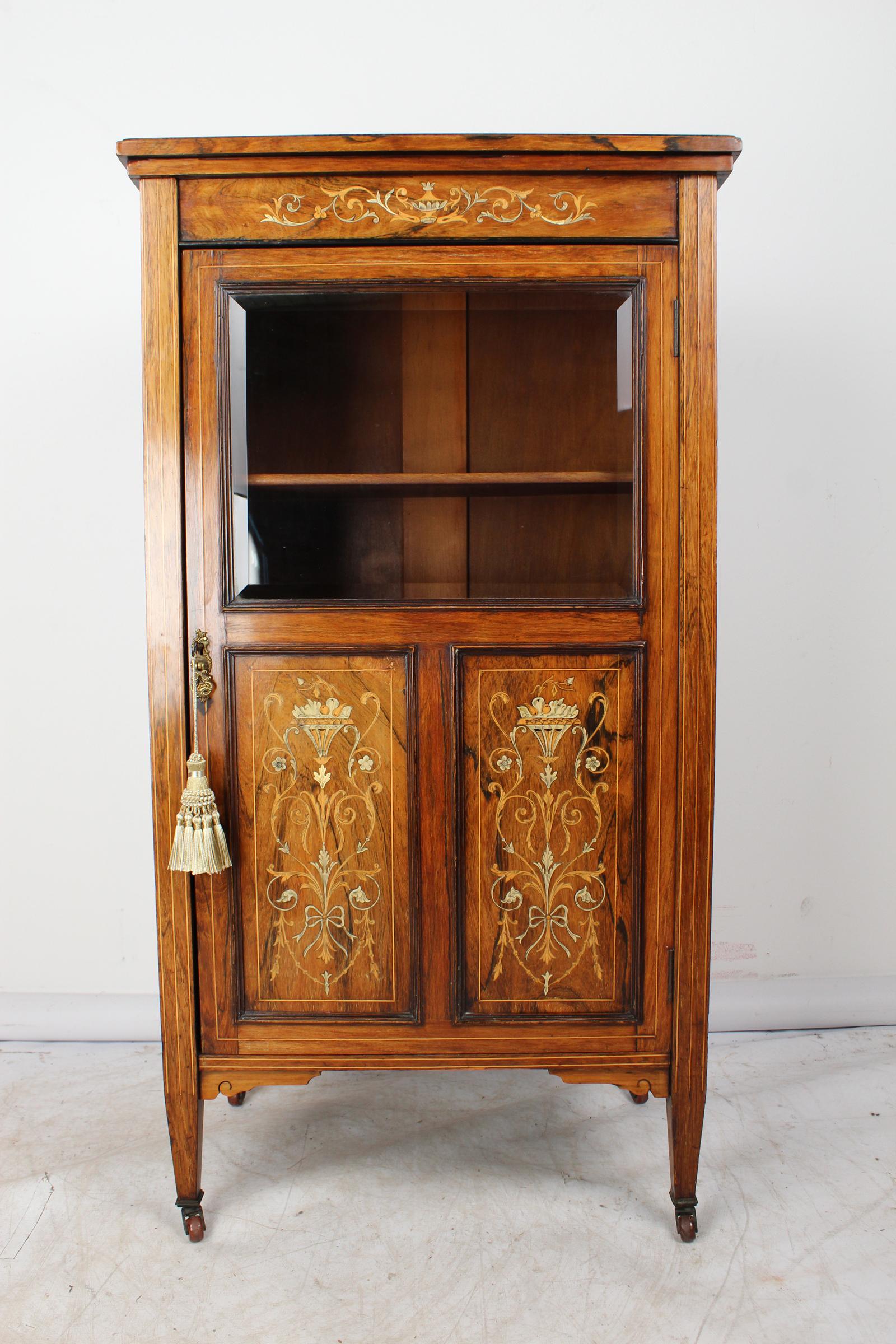 Victorian Inlaid Rosewood Music Cabinet / Bookcase