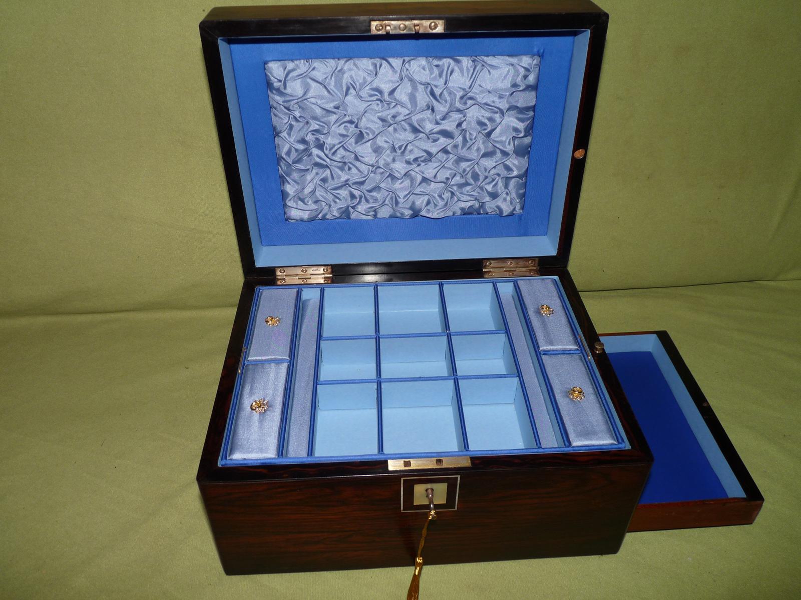 Victorian Inlaid Rosewood Triple Layer Jewellery Box. C1865