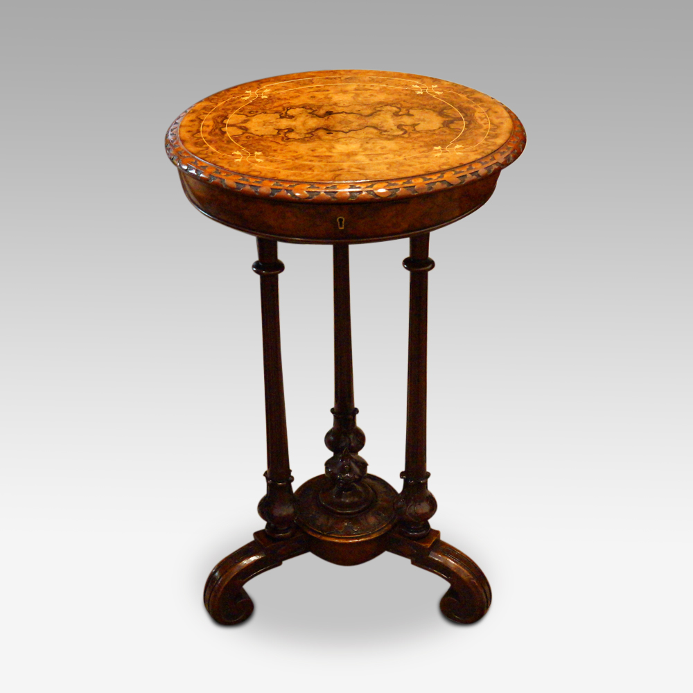 Victorian Inlaid Walnut Circular Workbox (1 of 1)