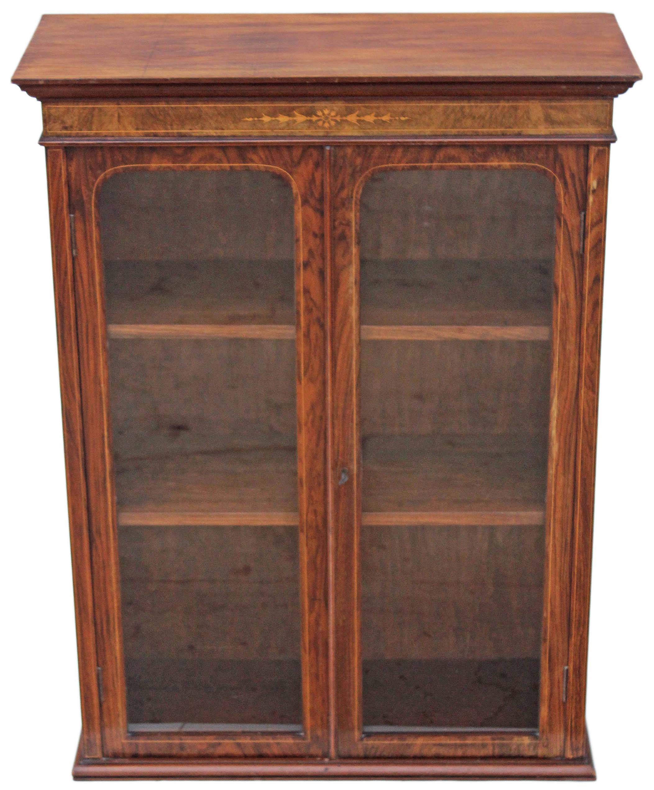 Victorian Inlaid Walnut Glazed Bookcase / Display Cabinet