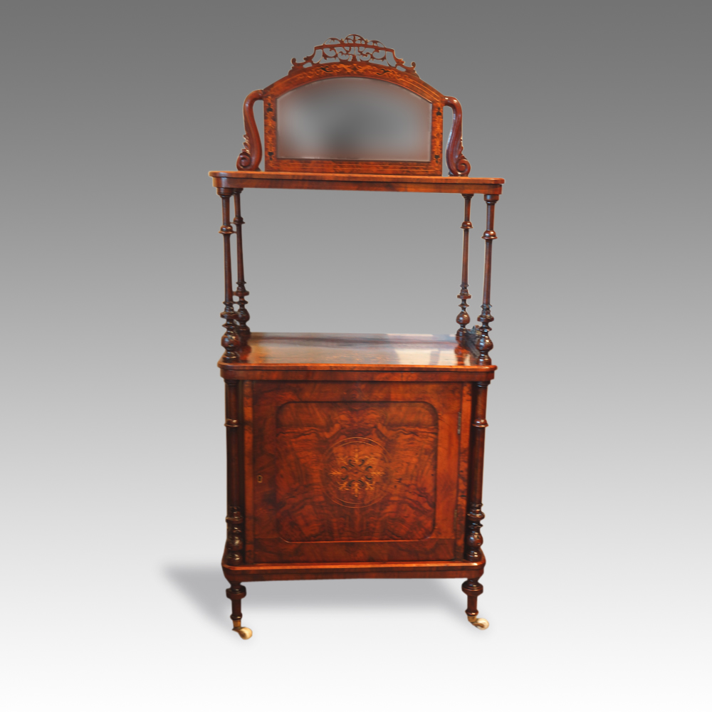 Victorian Inlaid Walnut Music Cabinet Whatnot