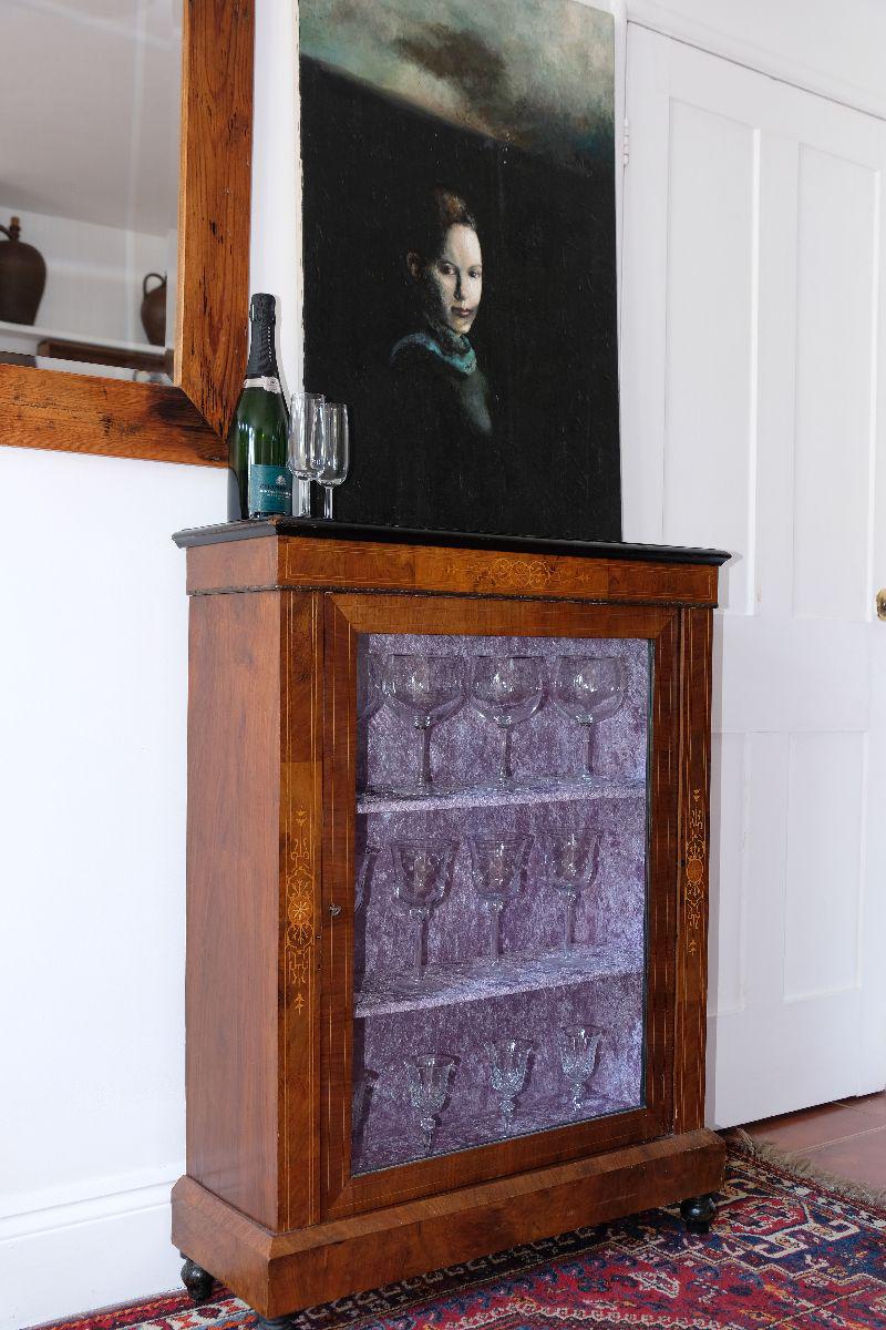 Victorian Inlaid Walnut Pier Cabinet on Turned Supports & Original Glass Framed Door