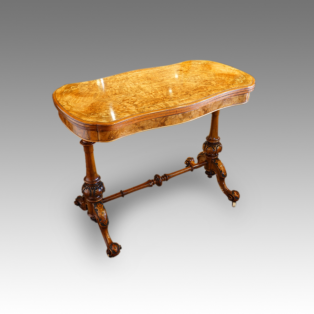 Victorian Inlaid Walnut Serpentine Card Table (1 of 1)