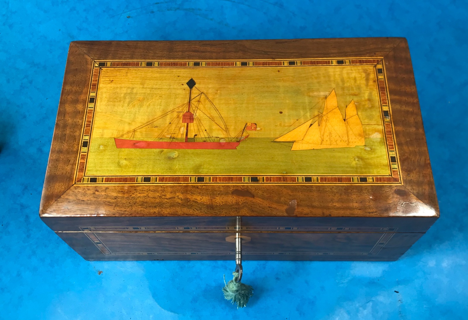 Victorian Inlaid Walnut Trinity House or Portsea Box, Featuring the Lighthouse Ship
