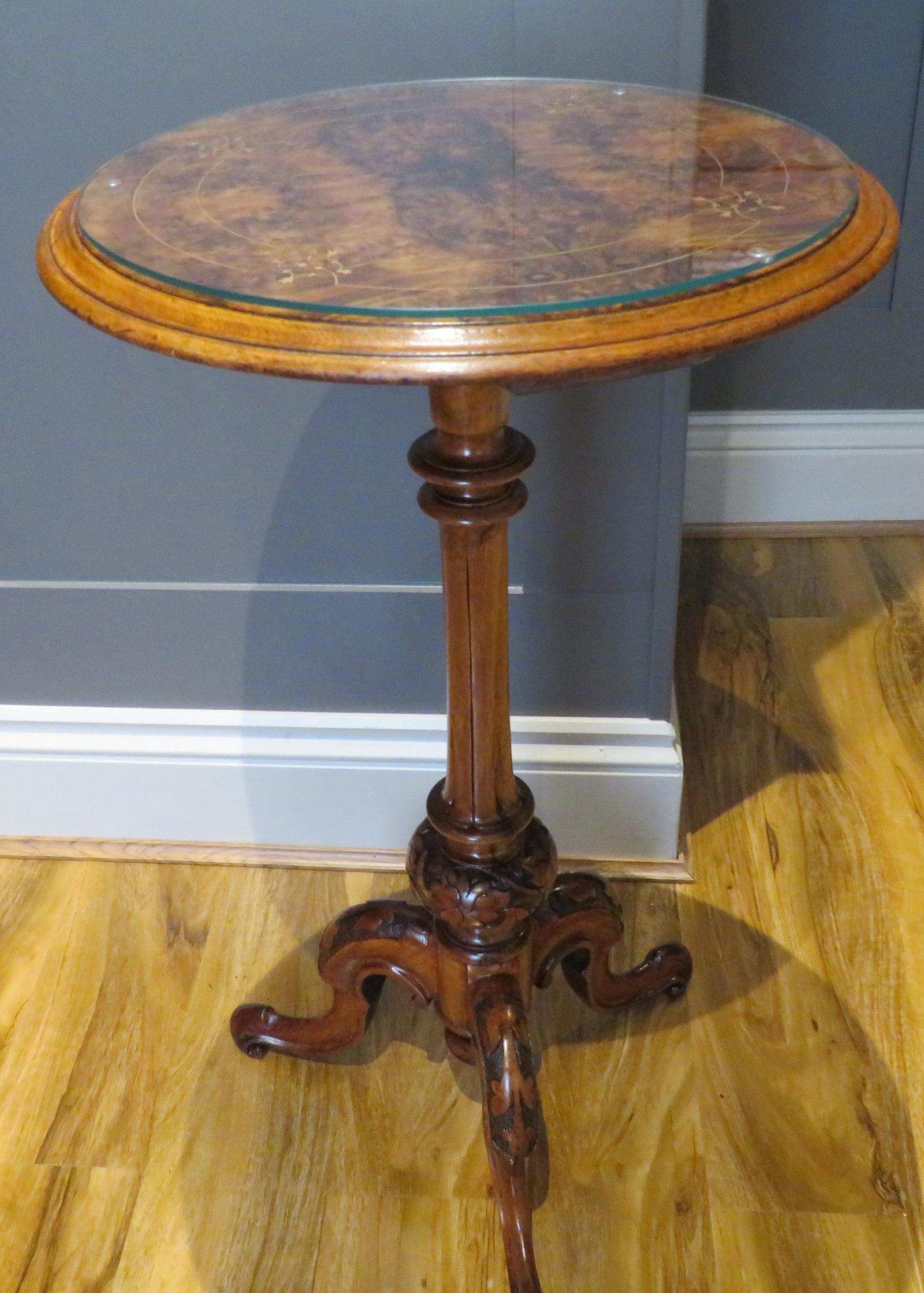 Victorian Inlaid Wine Table in Burr Walnut & Solid Walnut