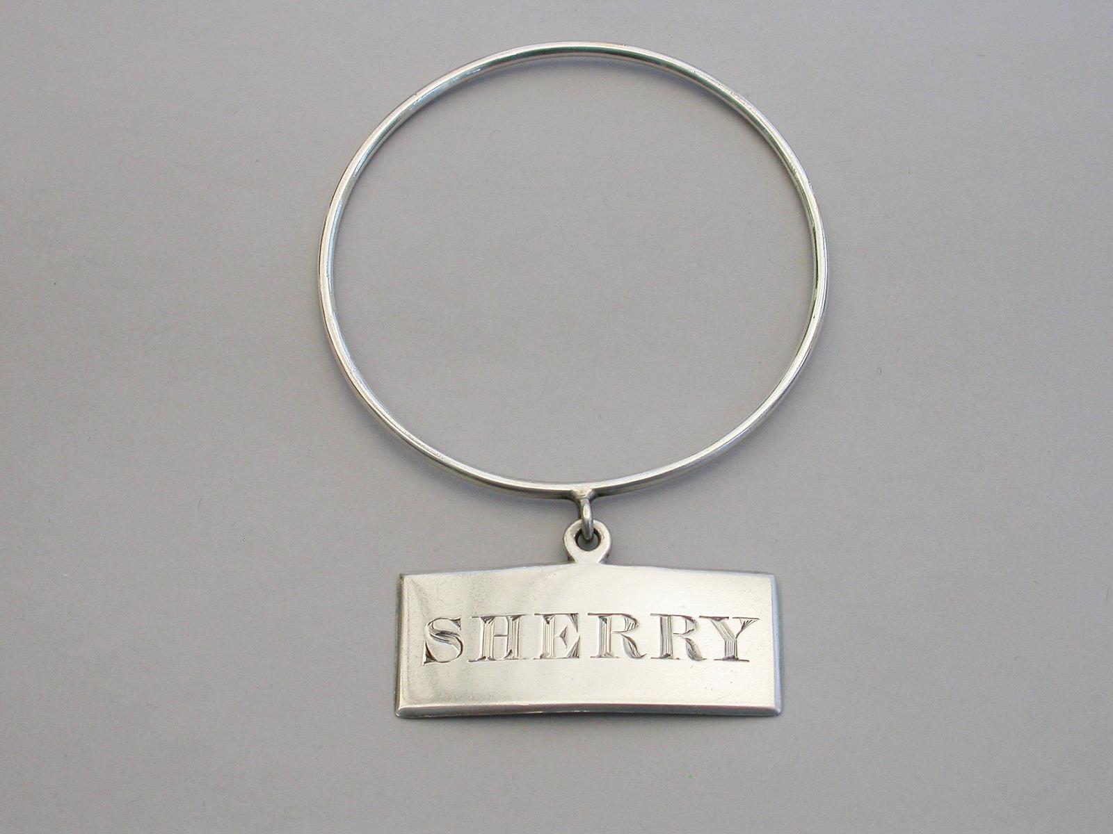 Victorian Irish Silver Neck Ring Wine Label 'Sherry' by John Smyth, Dublin, 1875