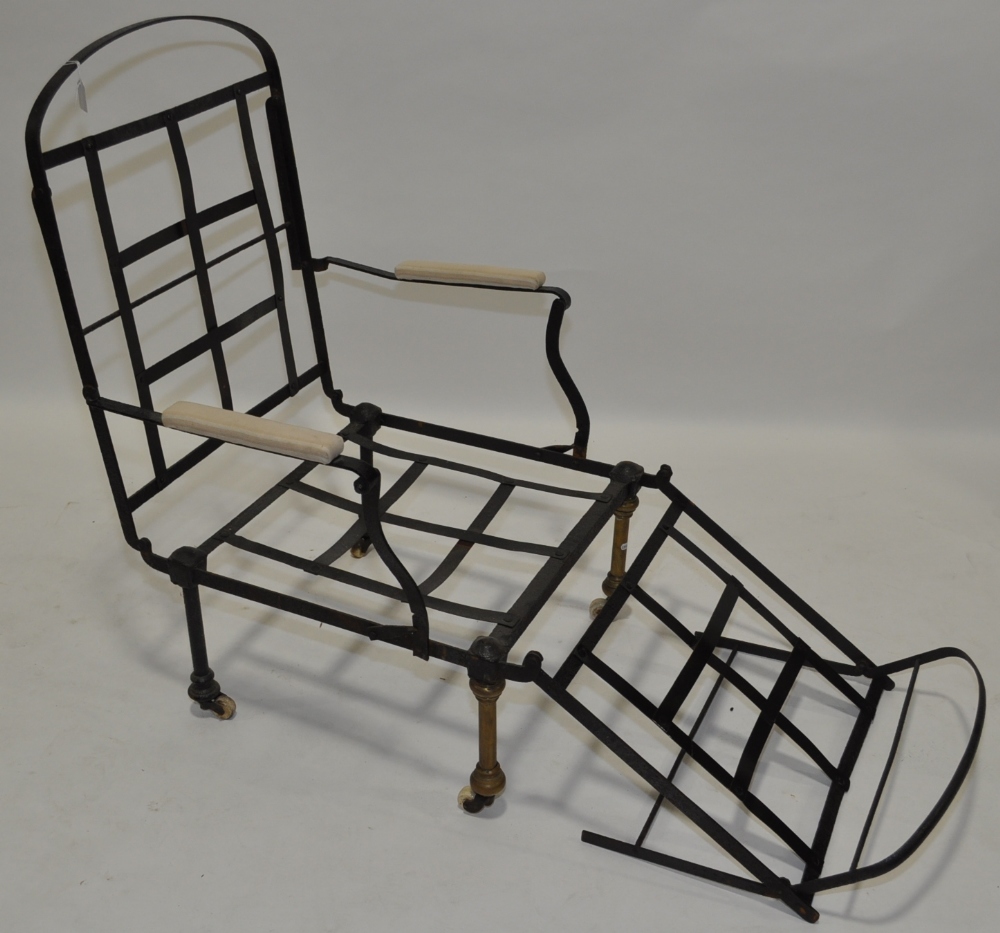 Victorian Iron & Brass Framed Folding Campaign Chair, Day Chair, Day Bed, Thick Feather Cushions