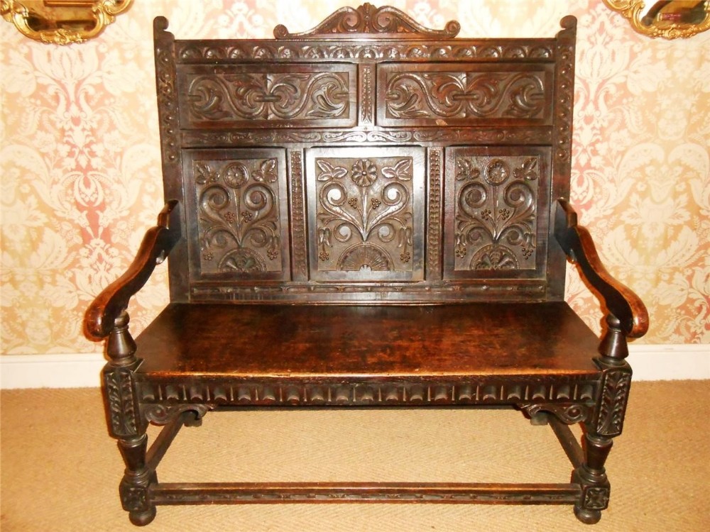Victorian Jacobean Style Oak Settle / Bench (1 of 1)