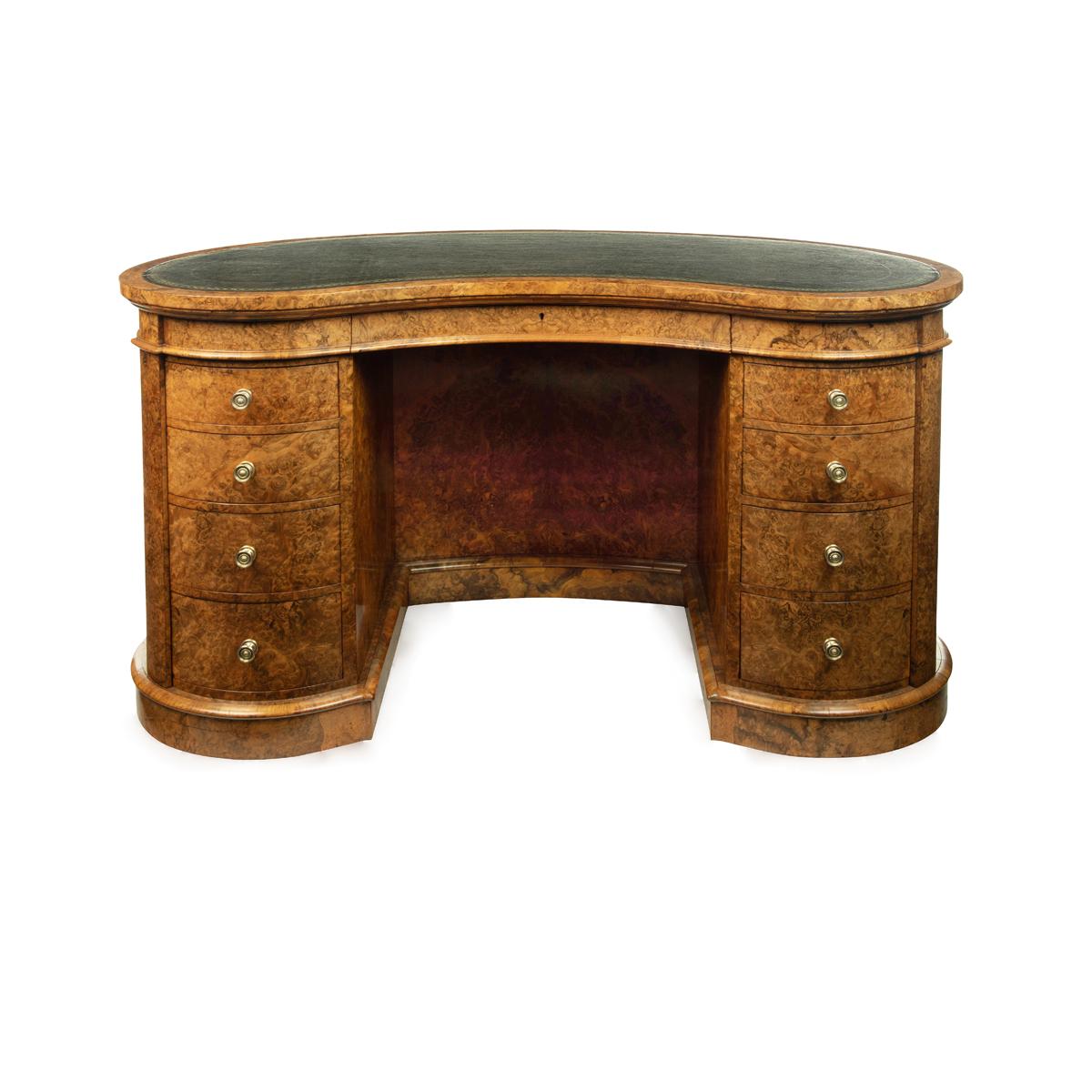 Victorian Kidney Shaped Desk in Richly Figured Burr Walnut - Attributed to Gillows