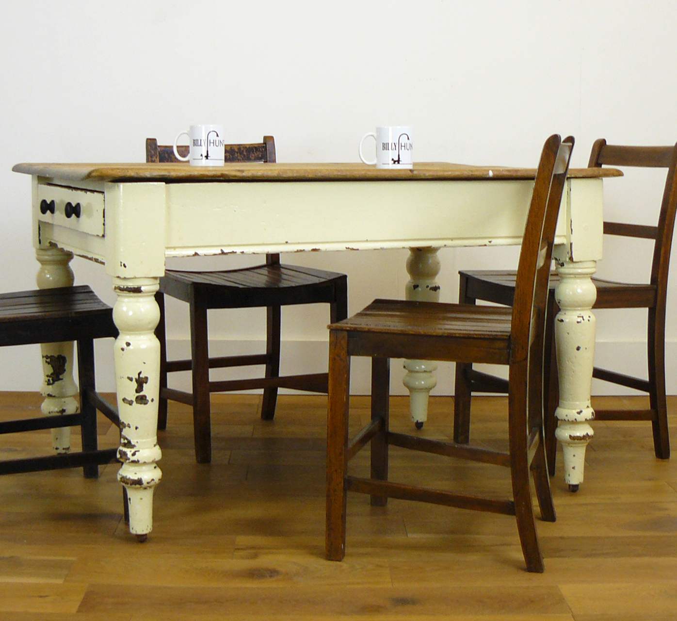 Victorian Kitchen Table Painted Legs & Drawer (1 of 1)