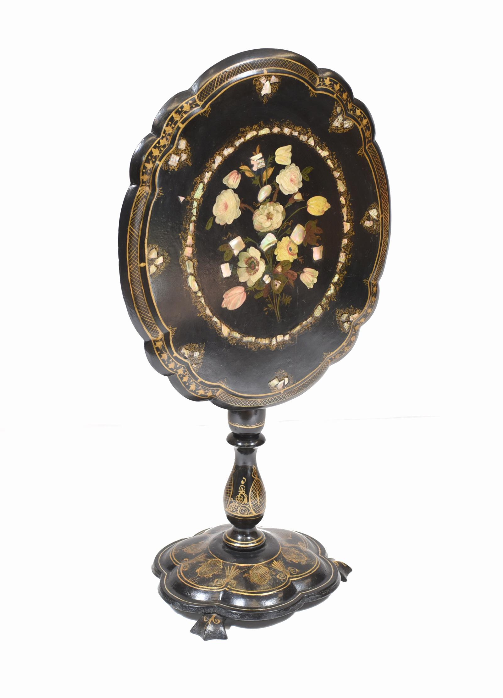 Victorian Lacquer Side Table Mother of Pearl Inlay Jennings and Betteridge