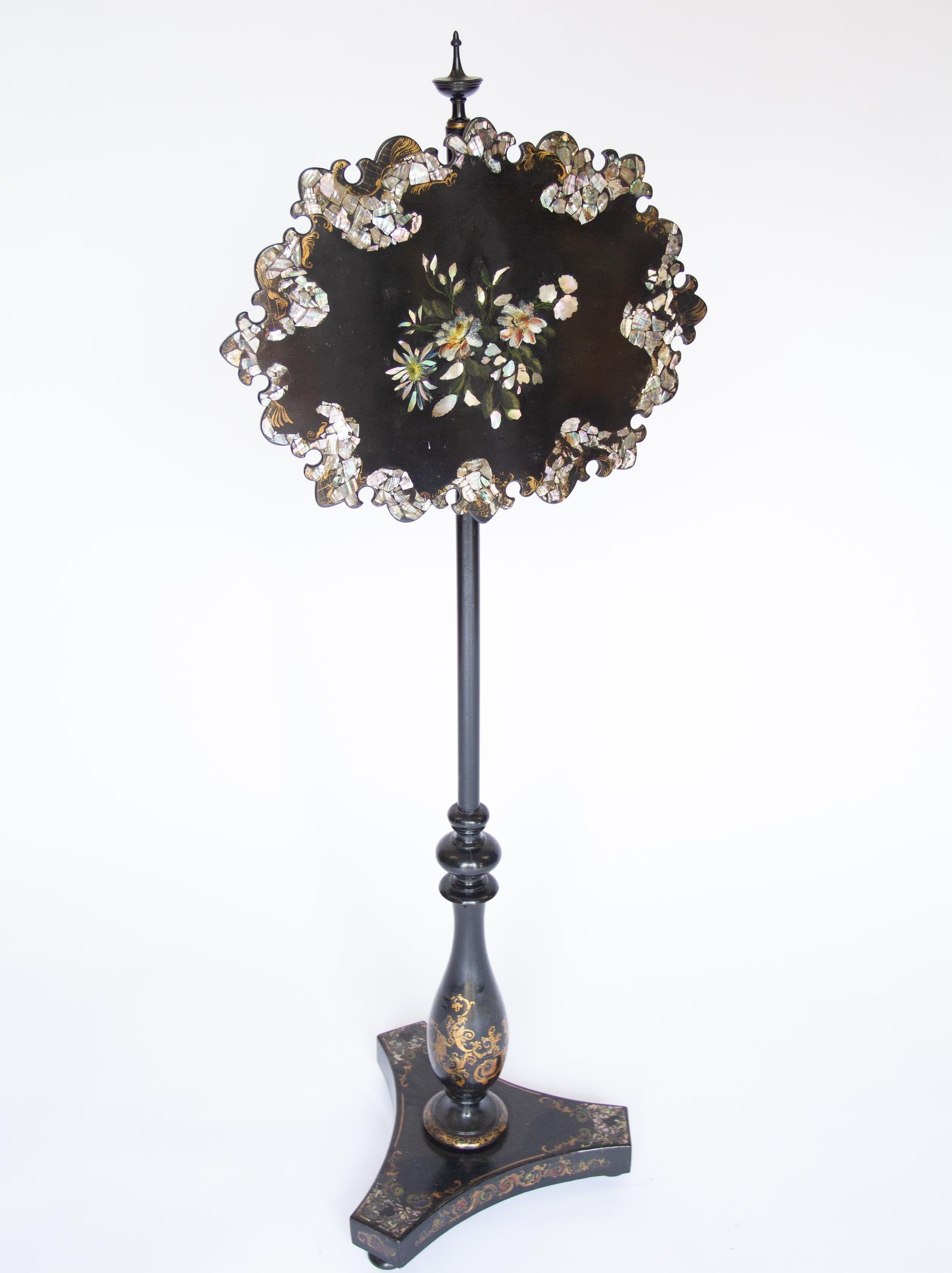 Victorian Lacquered & M.O.P. Inlaid Pole Screen (1 of 9)