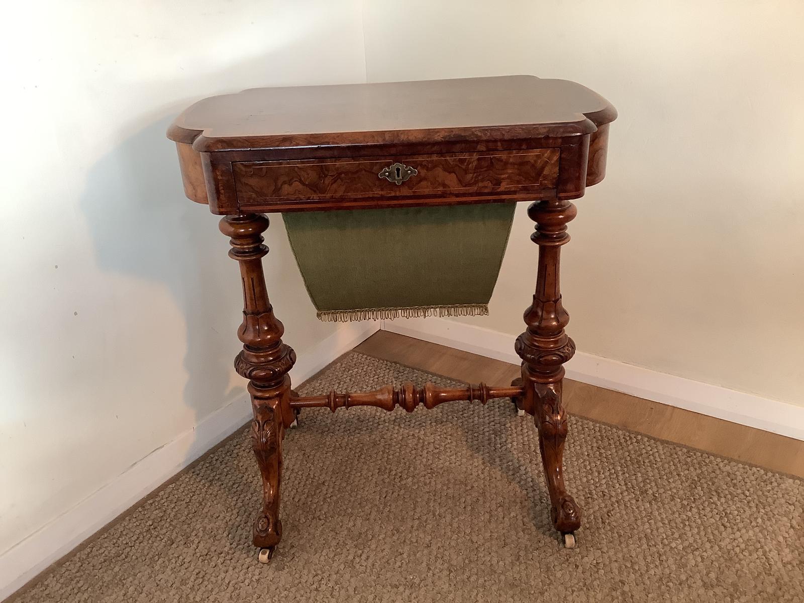 Victorian Ladies Burr Walnut Sewing / Work Table