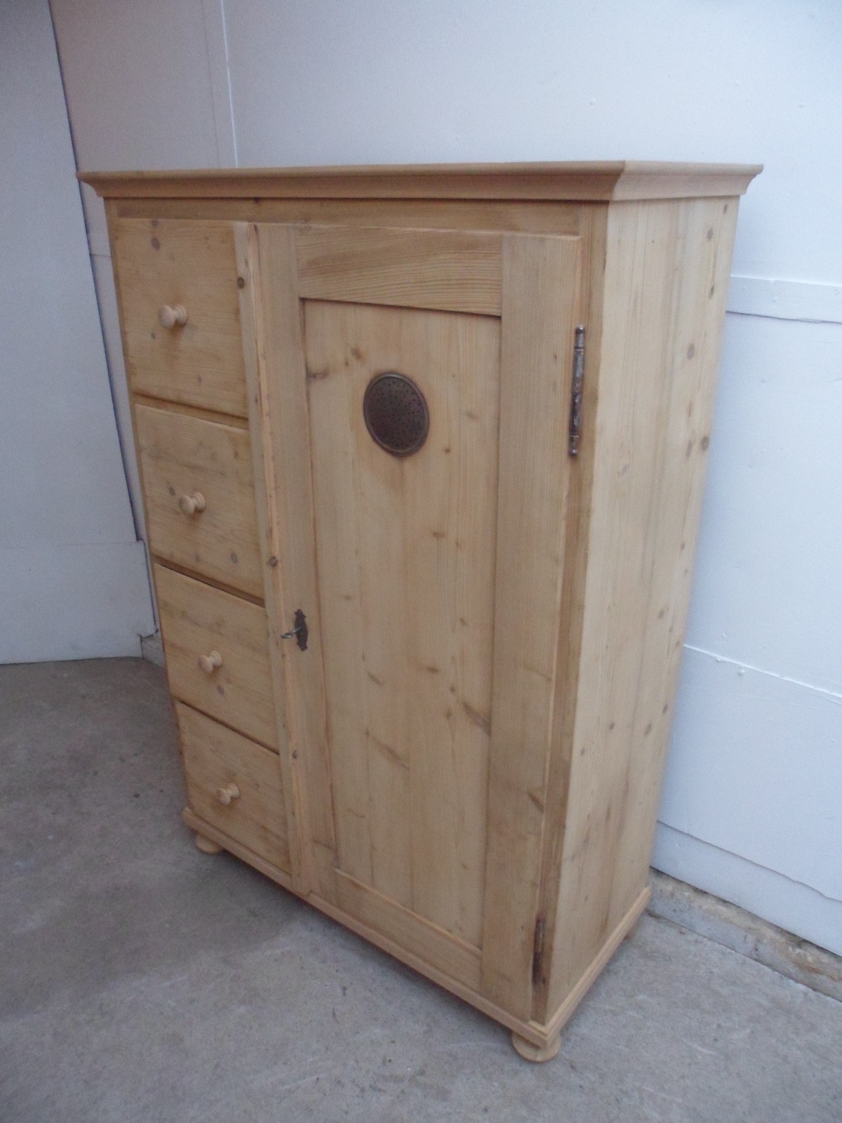 Victorian Large Antique Pine 4 Drawer 1 Door Metal Vent Kitchen Cupboard