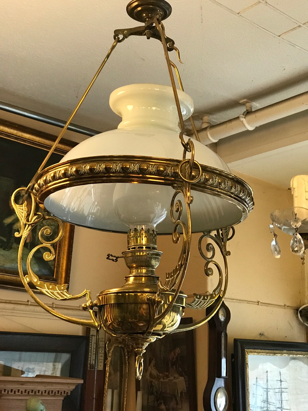Victorian Large Brass Hanging Oil Lamp (1 of 1)