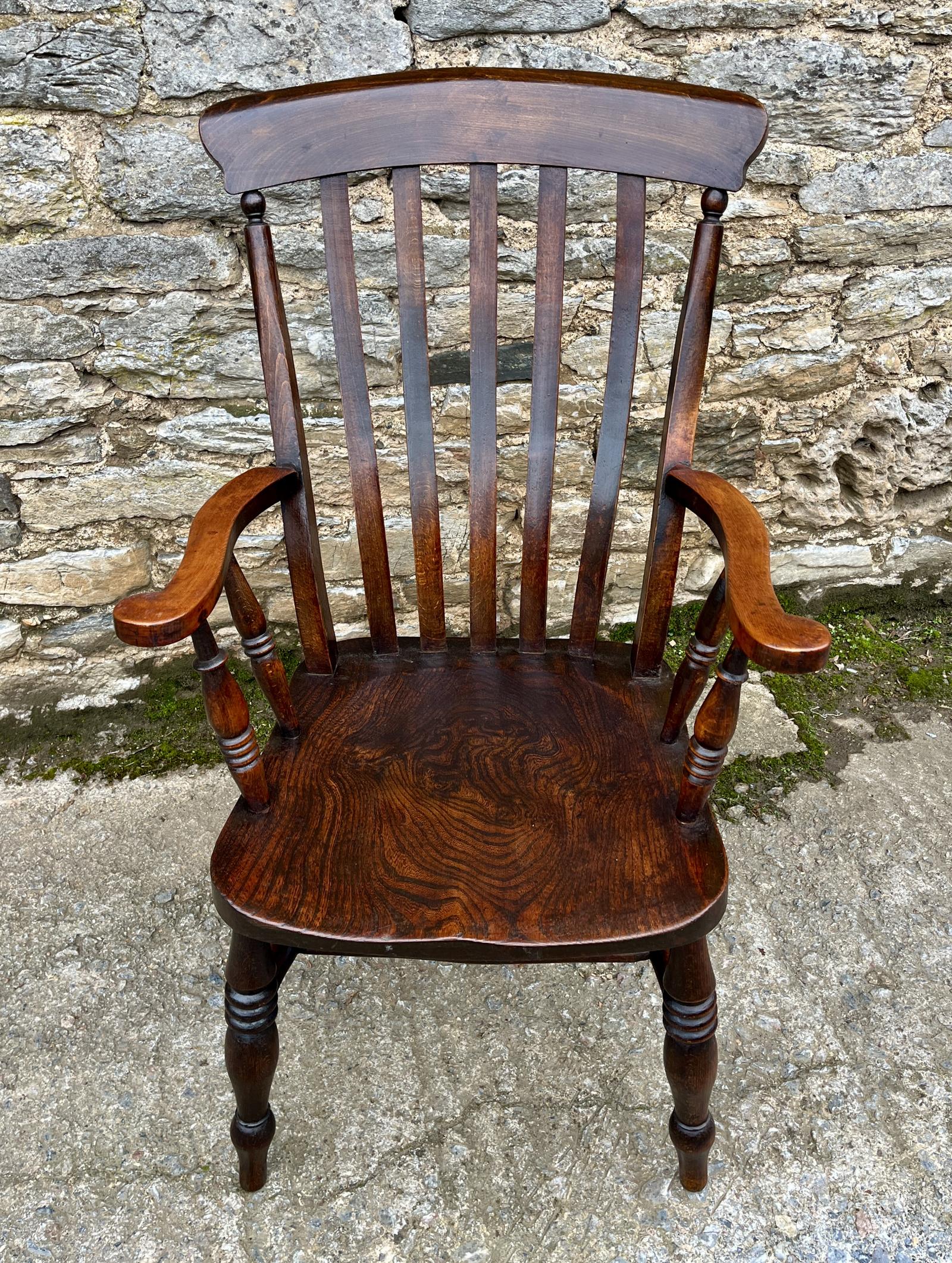 This Victorian Lathe Back Farmhouse Chair is located in Devon, United Kingdom