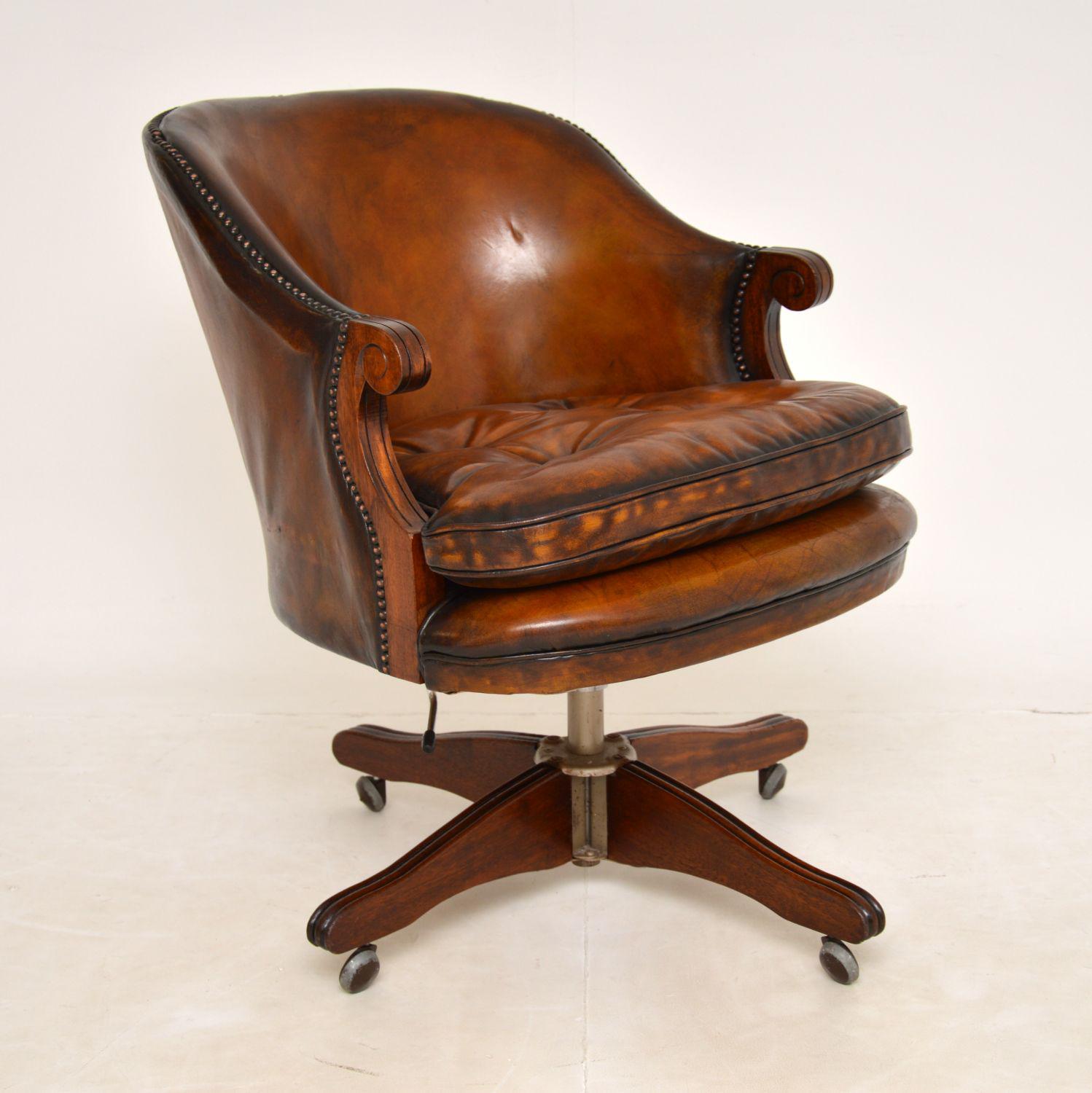 Victorian Leather & Mahogany Swivel Desk Chair 1950s