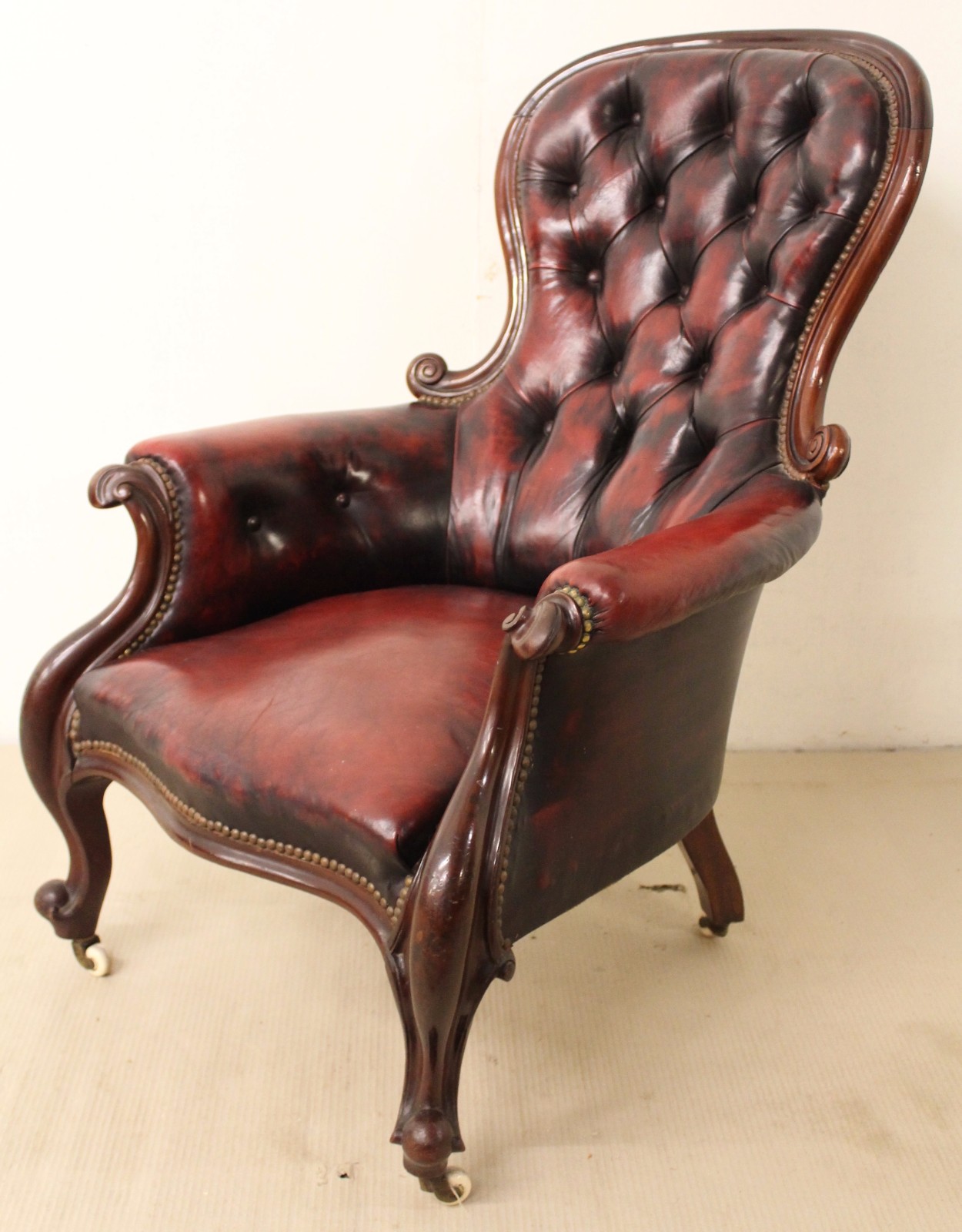 Victorian Leather Upholstered  Library Armchair c.1860 (1 of 1)